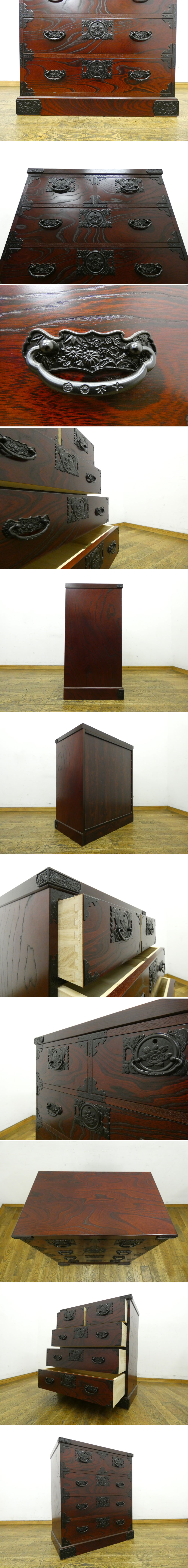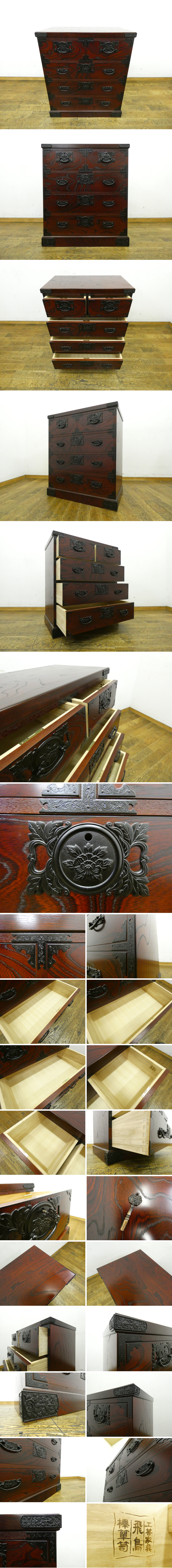 ◆FX969◆展示品◆飛鳥工芸家具◆豪華厚手金具◆欅材◆和箪笥◆整理箪笥◆4段チェスト◆時代箪笥◆衣装箪笥◆鍵付◆焼印◆民芸家具 收藏