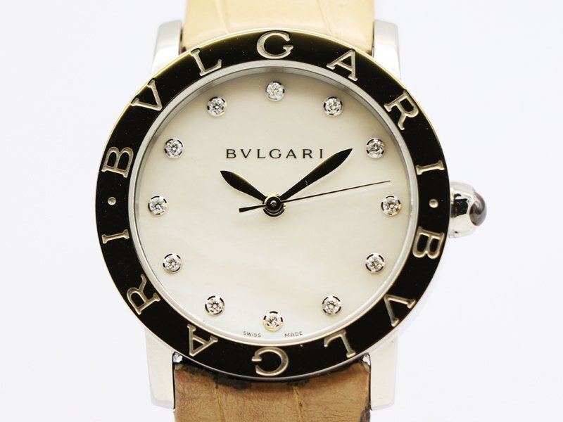 【 ブルガリ BVLGARI 】 腕時計 BBL33S ブルガリブルガリ SS/革 自動巻き ダイヤ12P シェル文字盤 ボーイズ □新着 70254-3 |