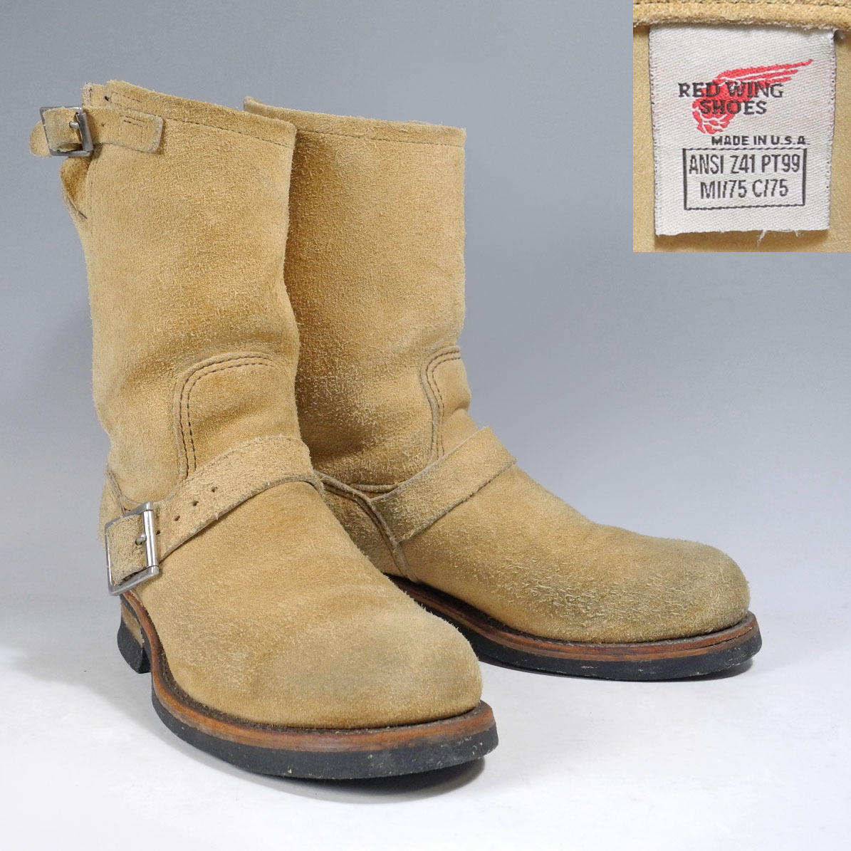 PT99刺繍羽タグ☆レッドウィング8268スエードエンジニアブーツ7.5D☆90年代90sベルト低 旧シルエットPT91ベージュ9269 2268 收藏