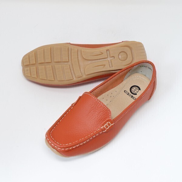 新品 25.5cm レディース 本革 ドライビングシューズ ローファー スリッポン オレンジ 541 收藏