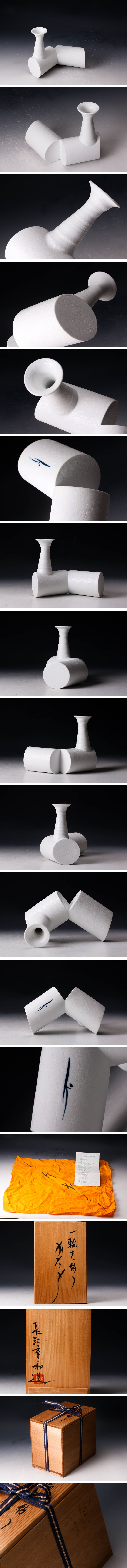 【佳香】長江重和 『一輪を待つかたち』白釉花器 共箱 共布 栞 本物保証 收藏