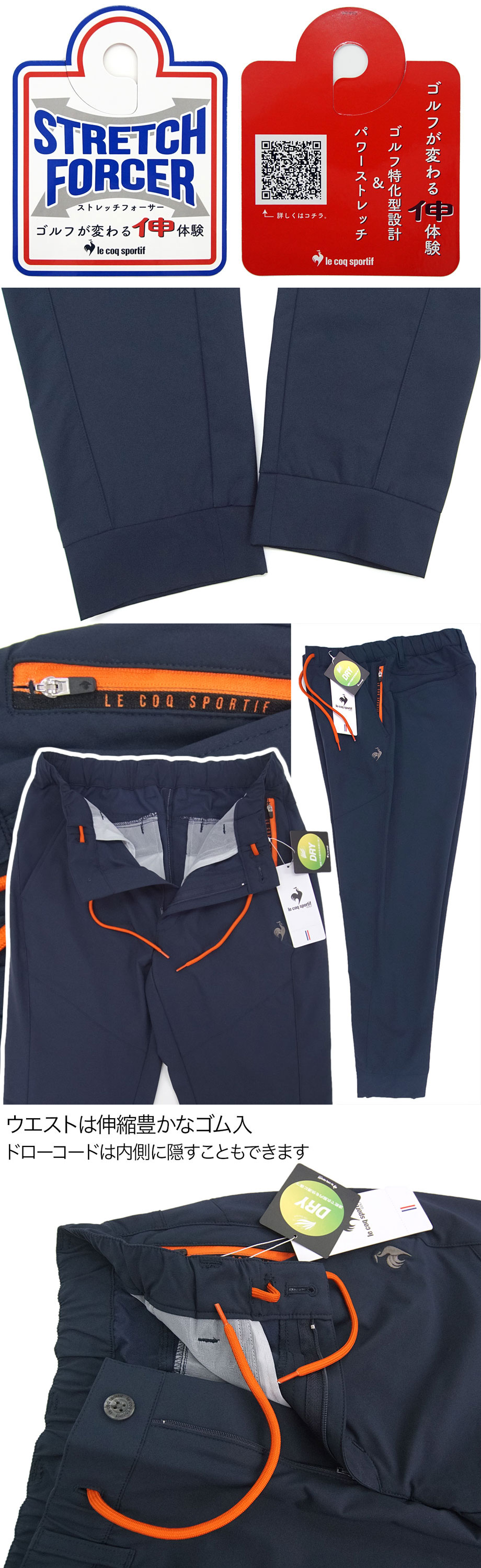 デサント製造の国内正規品。フランスの歴史あるブランド「ルコック スポルティフ」のゴルフレーベル【ルコック スポルティフ ゴルフ】。ゴルファーの動きやすさに特化した独自開発カッティングと優れたストレッチ性を有する【ストレッチフォーサー】のラインナップ。ウエストは伸縮豊かなゴムで約10cm伸縮し腰にぴったりフィット。アンクル丈、裾はジョガー仕様で裾補正なしで届いてすぐにトレンド感あるすっきりとした着こなしが楽しめます。オールシーズン(通年生地)。秋や春には特におすすめ。吸湿速乾性にも優れ、サラリとした肌触り。強力なUVカット機能(UPF 50+)も備えます。ゴルフラインの製品ですが、ベーシックなデザインでカジュアル、各種スポーツ等、あらゆるフィールドで快適な着心地をもたらします。ご家庭の洗濯機でお気軽に洗濯ができます。定価は税込12,430円の品。同種のラインナップでも人気が高く、セール購入の難しい品かと思います。どうぞお見逃し無く。(並行輸入品ではなく、国内の大手ゴルフショップやスポーツショップ、百貨店等で販売される国内正規品となります)
