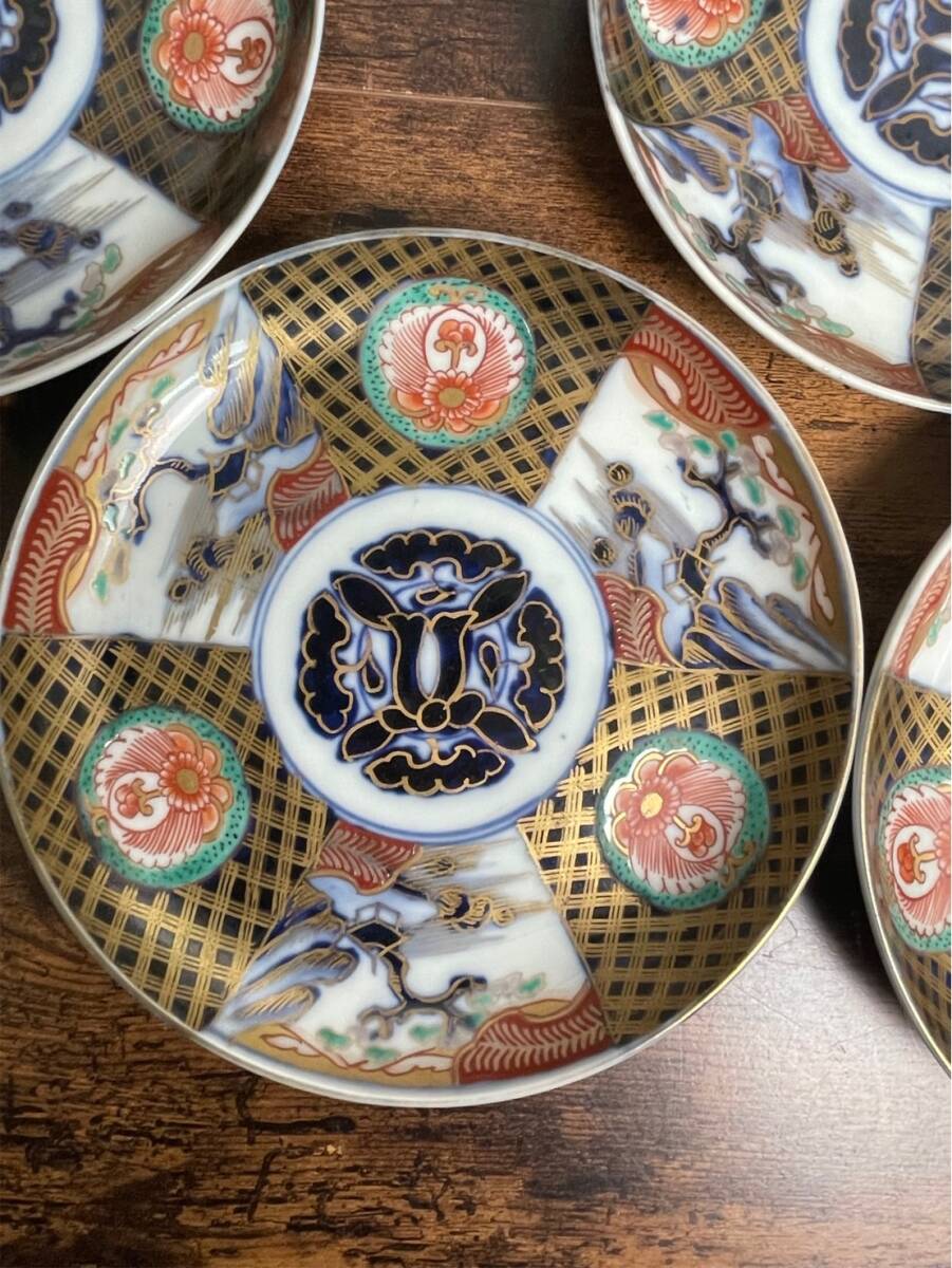 古伊万里 金襴手六寸皿 五客 アンティーク/中皿/銘々皿/お皿 收藏