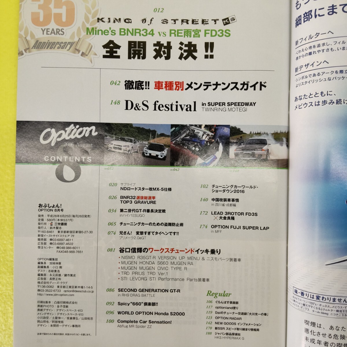 【Option オプション 2016年8月】全開対決 R34 FD3S/チューニング インプレッサ/シルビア S15/ランサー CT9A/JZX100/谷口信輝/ロードスター 收藏
