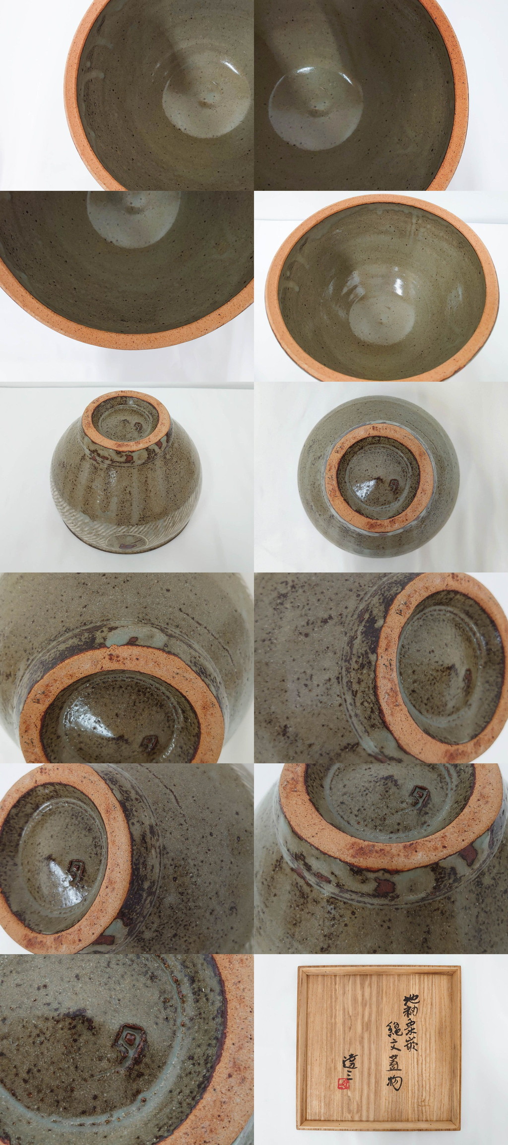 R-084765 人間国宝 島岡達三 益子焼 地釉象嵌縄文 8寸 蓋物(蓋付き器、香合、調味料入れ、菓子鉢、茶壷、共箱付、八寸) 收藏