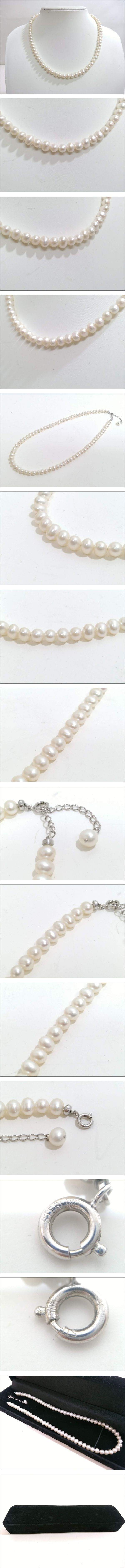 【美品】シルバー留具 変形本真珠ネックレス/パール粒約5.2-6.5mm/約40-45cm/バロックパール/プリンセスレングス/アクセサリー/04KM100202 收藏