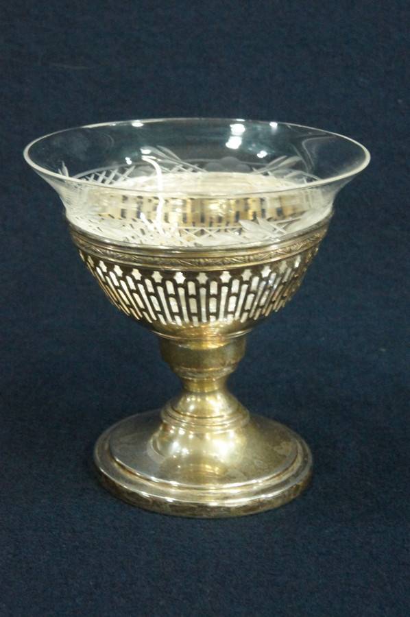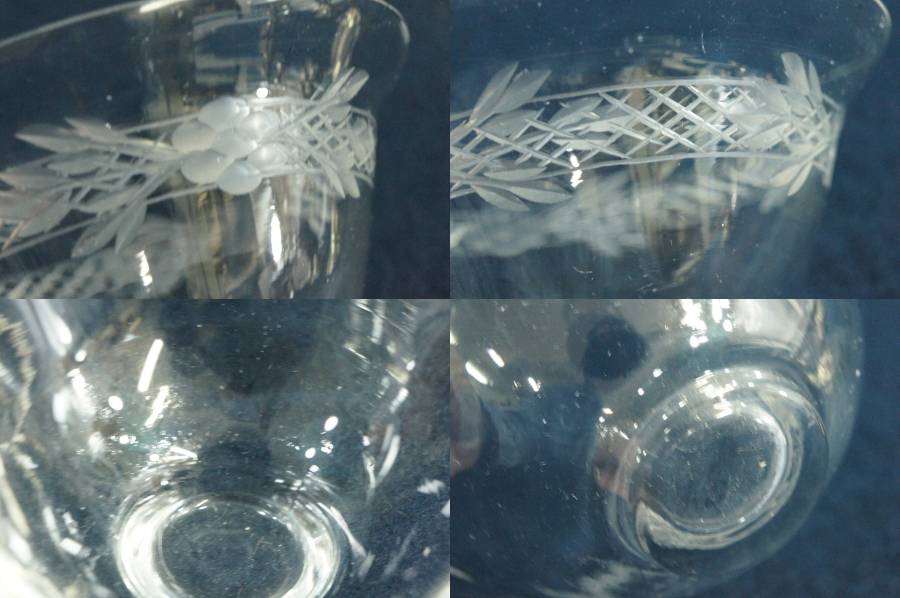 ガラスを受ける部分は透かしが入れられており、ガラス部分には草花模様が入っています。