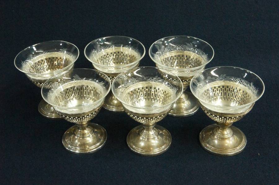 アメリカの銀食器メーカー・Gorham社の銀製脚付きシャンパングラス6客セットです。