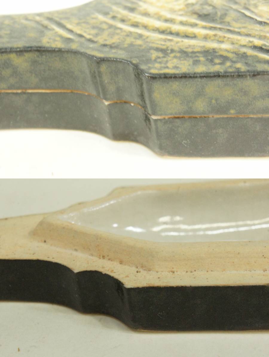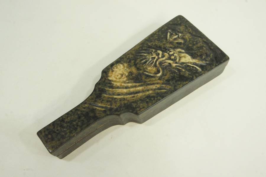 ●表千家十三世家元即中斎書付 神奈川焼龍羽子板香合/神奈川焼 三代井上良斎 状態良好 共箱 茶道具