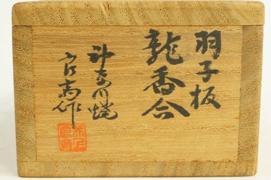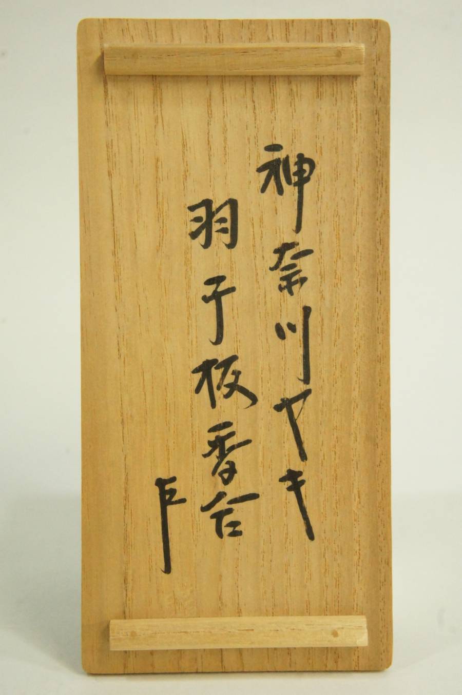 「神奈川焼羽子板香合」とあり、本体は花押入りです。