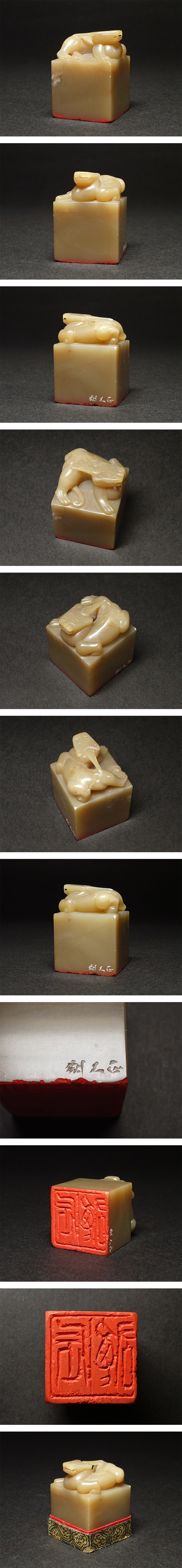 慶應◆文化勲章【高山辰雄】所持品 自用印 辟邪鈕方印 印章 印材 書道具寿山石芙蓉石巴林石鶏血石田黄凍石白玉翡翠 收藏