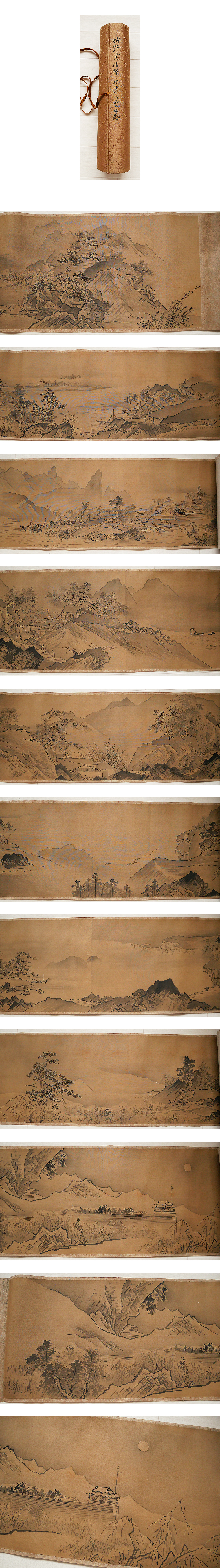 【真作】巻物『 狩野常信 瀟湘八景 絹本絵巻 長7M 』古画 山水図 江戸前期の画家 古筆古文書 中国唐物唐画 收藏