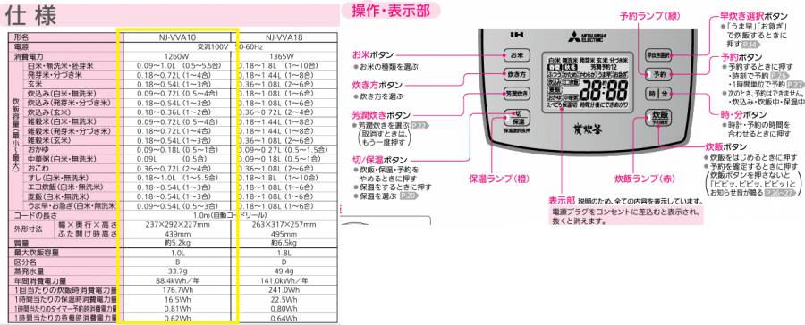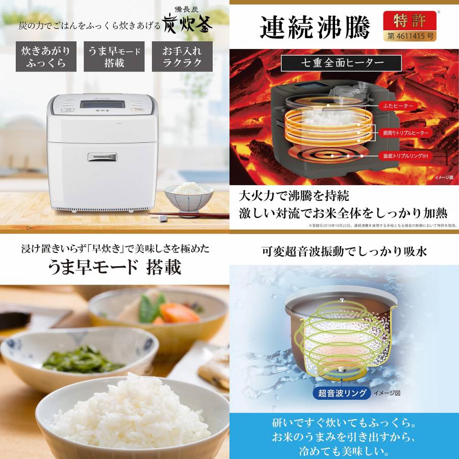 参考価格43.868円★三菱 IHジャー炊飯器 5.5合炊き 備長炭 炭炊釜 七重全面ヒーター うま早モード搭載 ピュアホワイト NJ-VVA10 2019年製 | ||