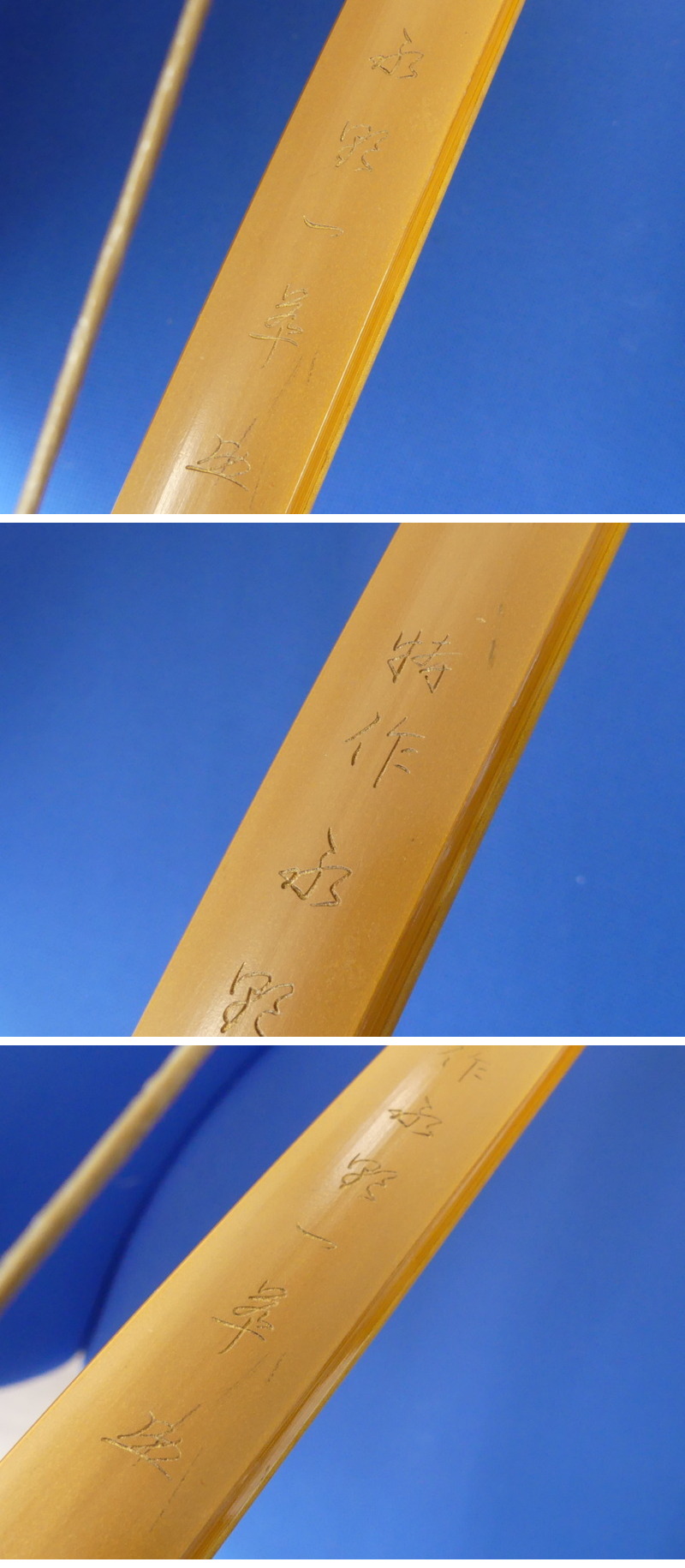 ◇商品名◇ | x657 竹弓 弓道 弓師 金銘 特作 永野一萃 在銘 花押 217cm 和弓 重量480g 弓道具 | ||||||||||||||||||||||||||||||