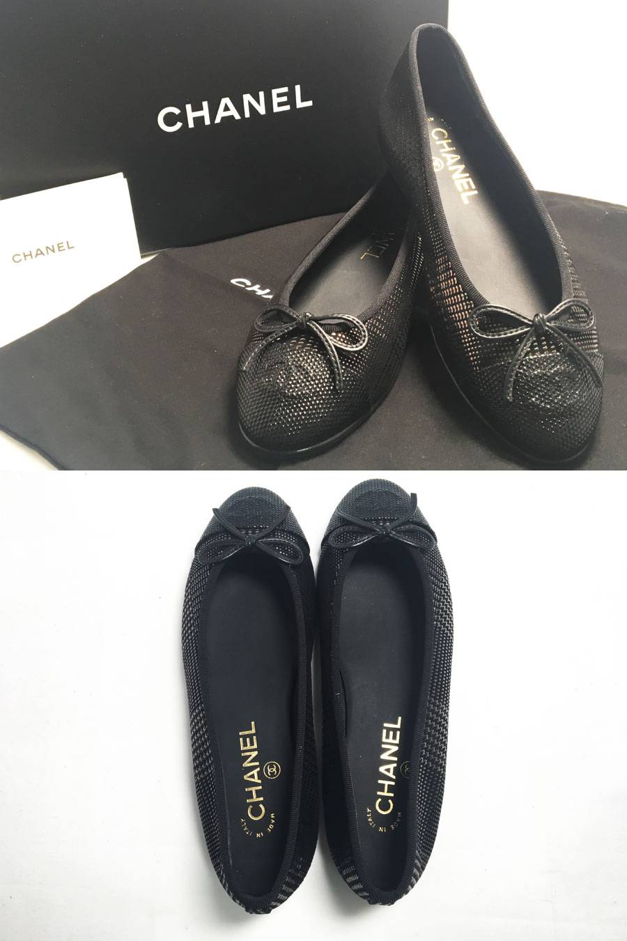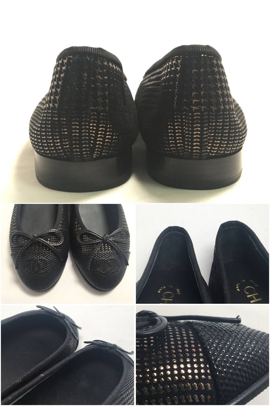 未使用!シャネル CHANEL ココマーク バレリーナ シューズ AG02819 37 C リボン フラット スェードキッドスキン 保存袋・箱付 收藏