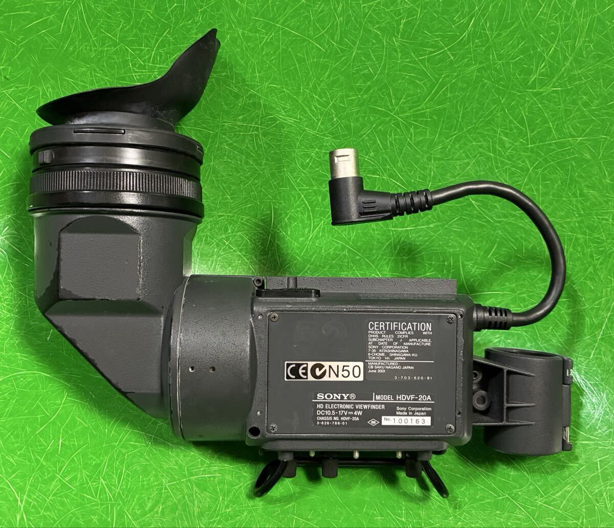 「HDVF-20A」は、主にソニー(Sony)がプロ用放送・映像撮影用途向けに設計した HD(ハイビジョン)対応の電子ビューファインダー (viewfinder, VF) です。特にカメラ/カムコーダーの映像確認・構図決定・露出確認などに使われる、モノクロ CRT タイプのビューファインダーです。