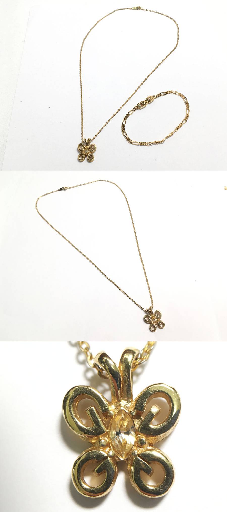 ◆2点おまとめ GIVENCHY ジバンシー 蝶 バタフライ 天然石 ペンダント K刻印 長さ約46cm・ブレスレット 約18cm ゴールド レディース 收藏