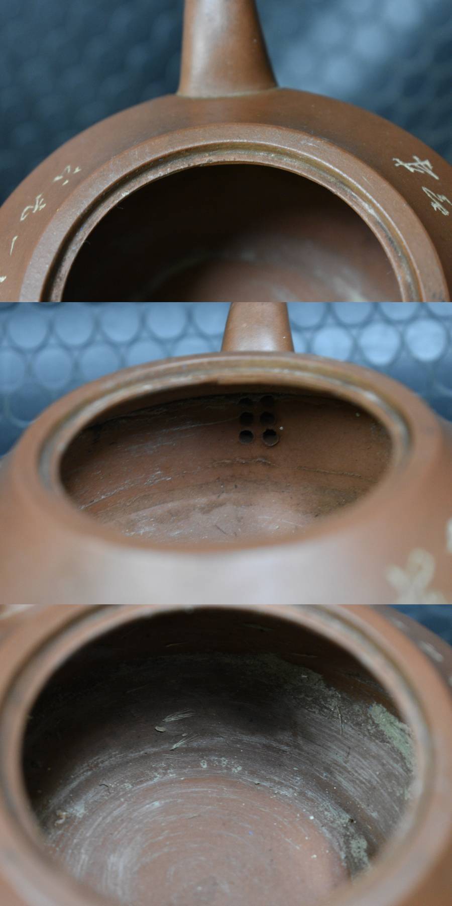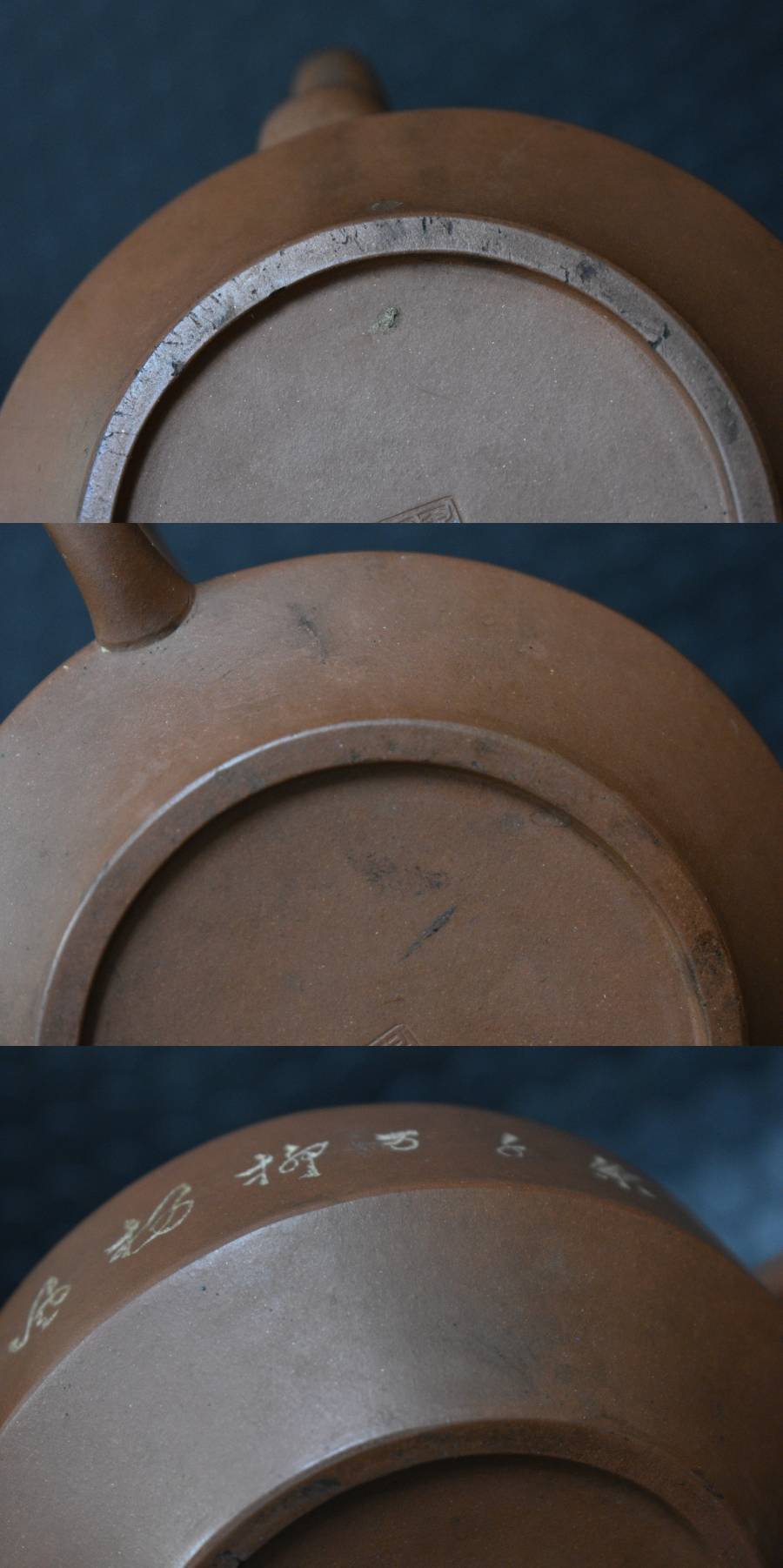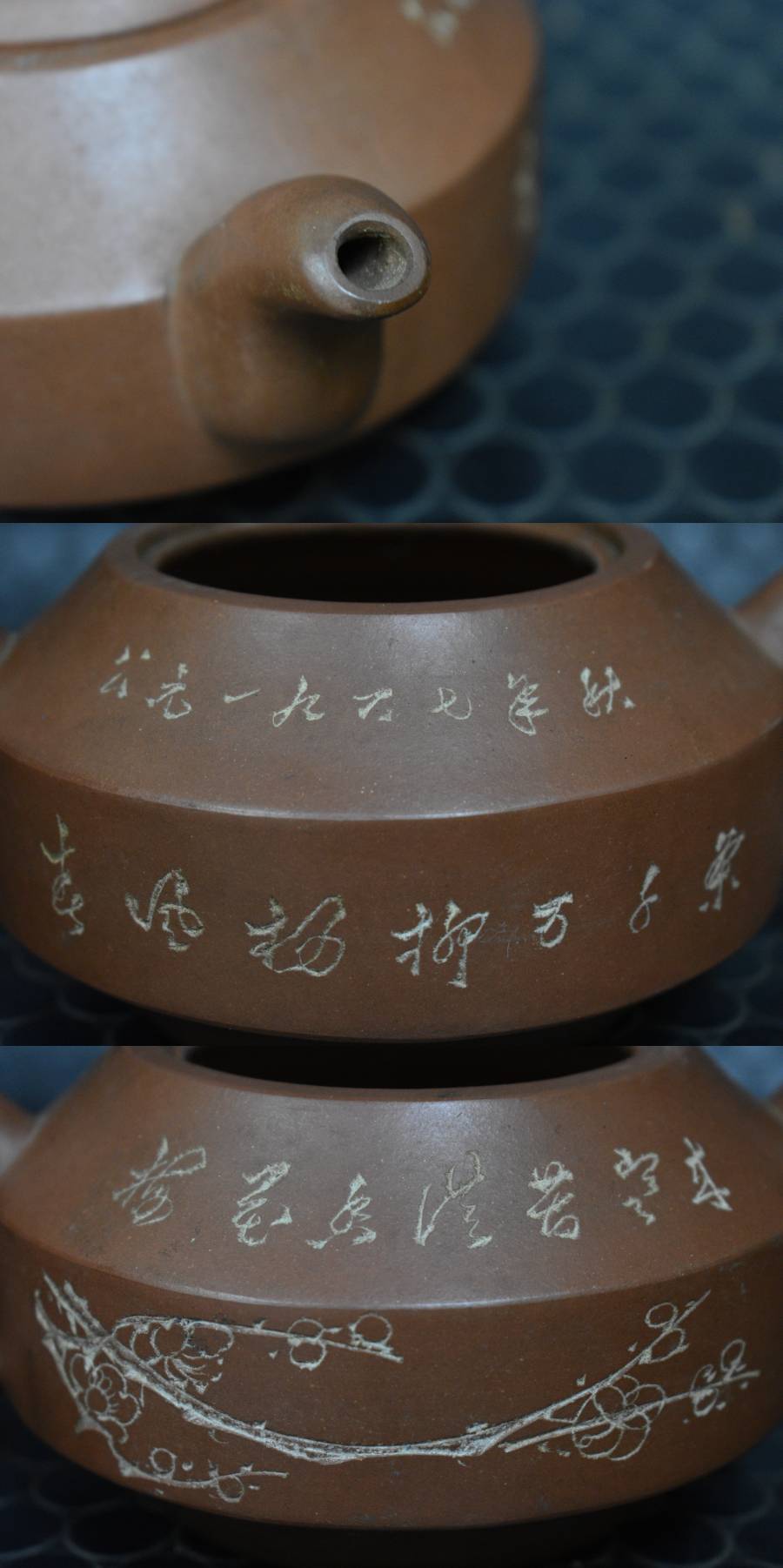 うぶ品 中国美術 唐物 中国宜興 洪芬?蓋裏銘 紫砂 朱泥 梅木漢詩刻急須 煎茶道具 古美術品 收藏