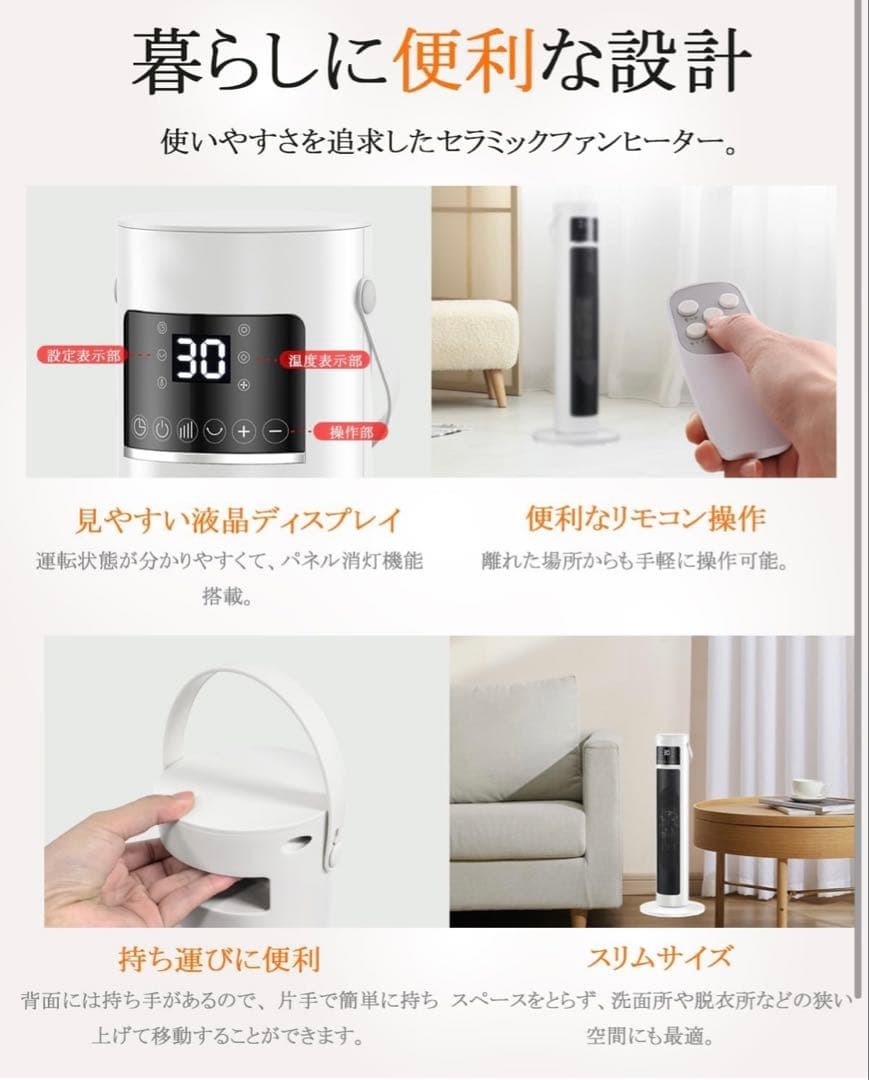 セラミックヒーター 2秒速暖 電気ファンヒーター 省エネ 自動首振り タイマー 收藏