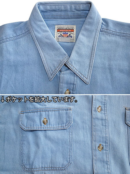 < 中古> 長袖 シャツ 綿100% デニム地 LL 特大 ブルー系 クリーニング済 No.1316 ◆ 送料別 レターパックプラス 收藏