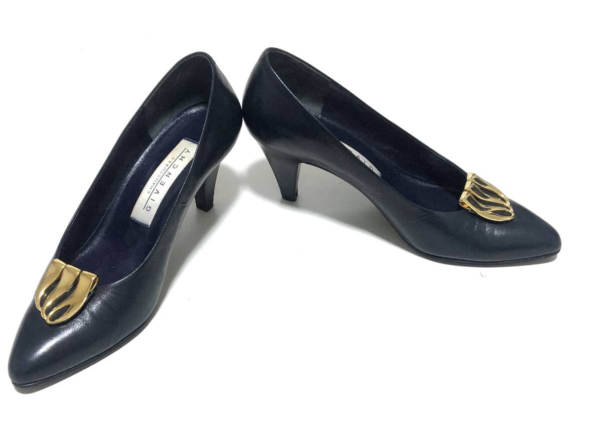 【良品~美品】GIVENCHY ジバンシィ レザー パンプス 36 ネイビー ゴールド金具 23cm 收藏