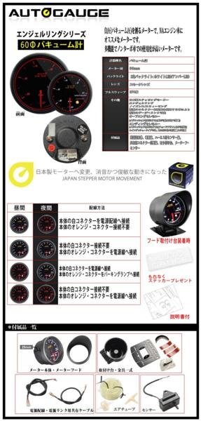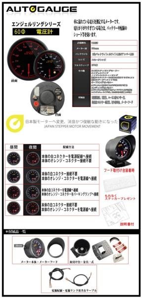 オートゲージ バキューム計 電圧計 60Φ 2連メーター 458 2点セット 日本製モーター エンジェルリング ワーニング 60mm 收藏