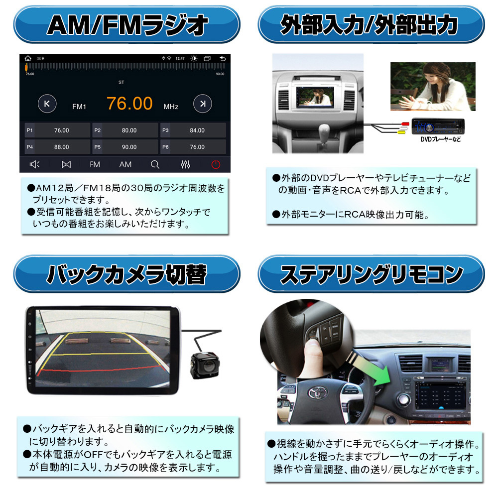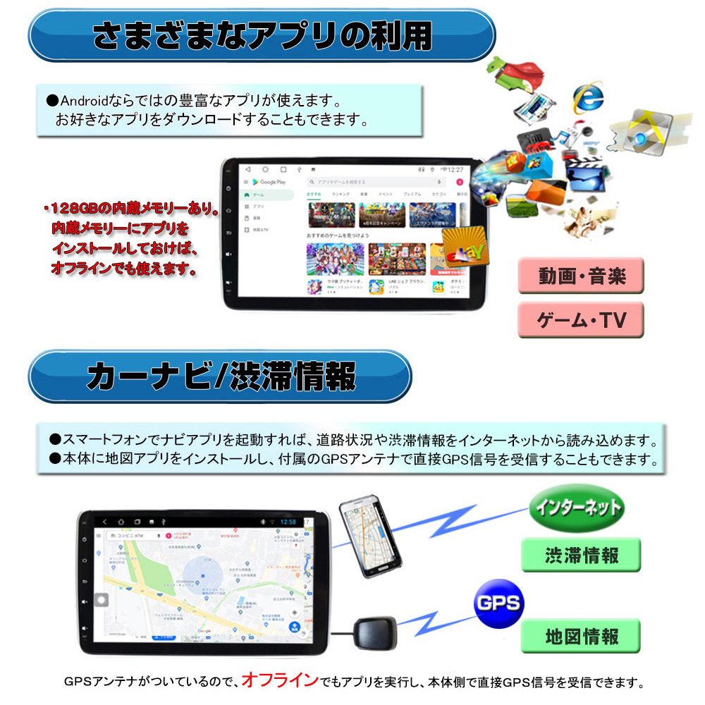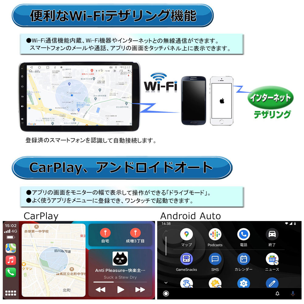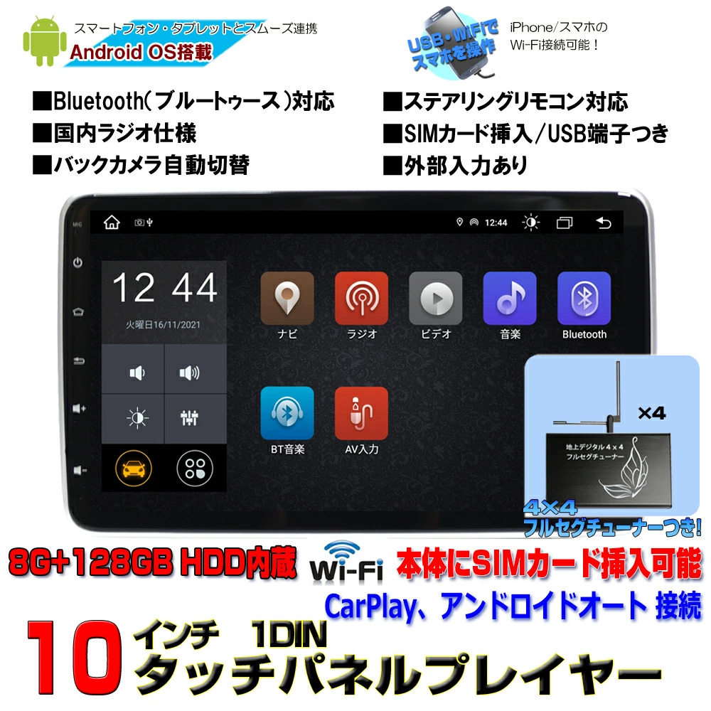 車載1DIN10インチタッチパネルプレイヤー CarPlay アンドロイドオート Android10.0搭載 WiFi ラジオ USB Bluetooth 8GB+128GBメモリー内蔵 + 地デジ4x4フルセグチューナーセット アンドロイドスマートフォン