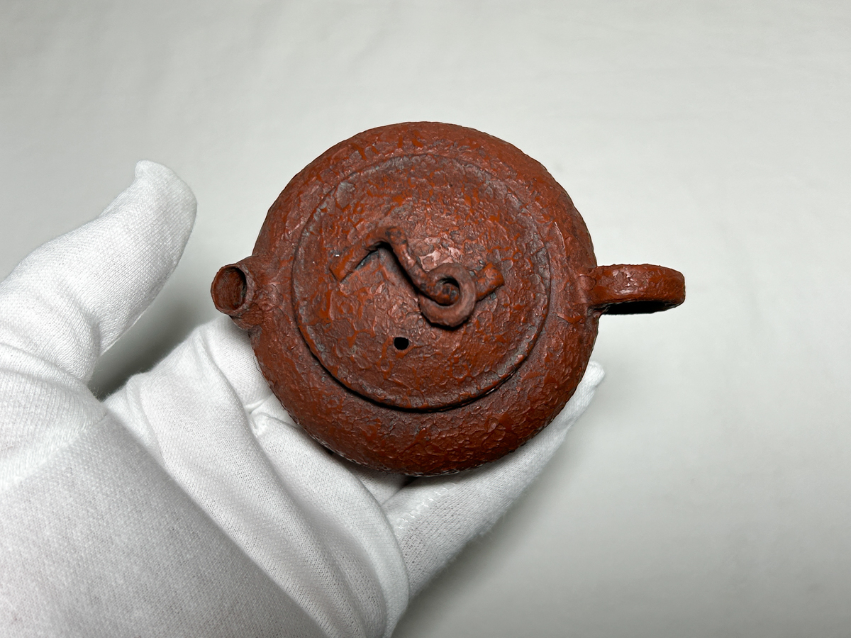 本品は中国製の朱泥急須で、摘み部分が可動する珍しい造りの作品です。
