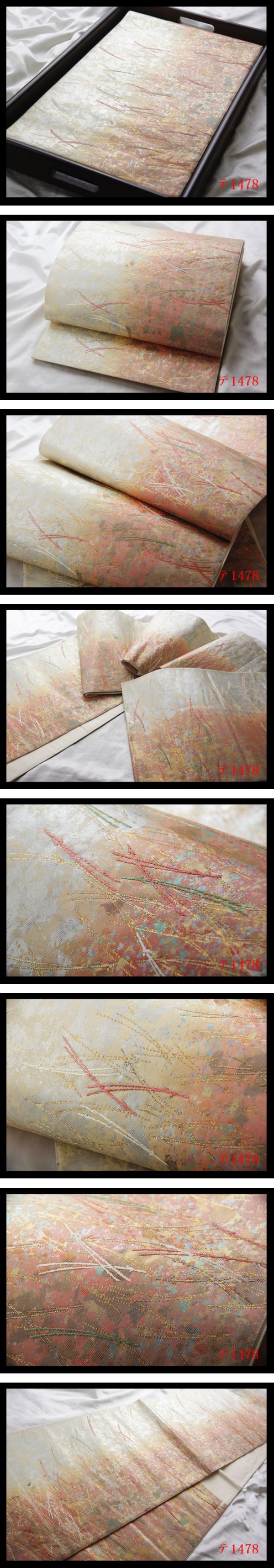蔵【テ1478】厳選逸品 引き箔 シルバー色退紅色 気品豊かに 正絹六通高級美術袋帯 ◇検◇簪着物名古屋帯和装小物帯締め 收藏