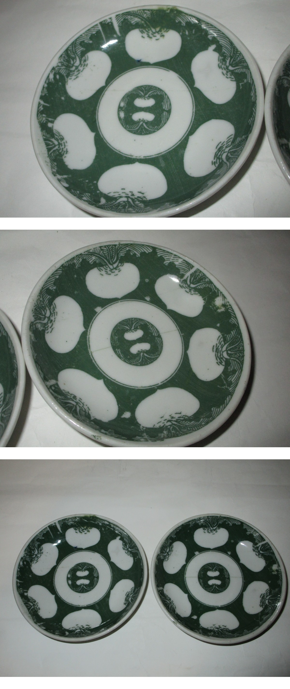 【明治~大正期】●図替わり● 緑 印判 小皿 2客 (直径11.3cm) 『蕪(かぶら)』紋  ●無傷● 收藏