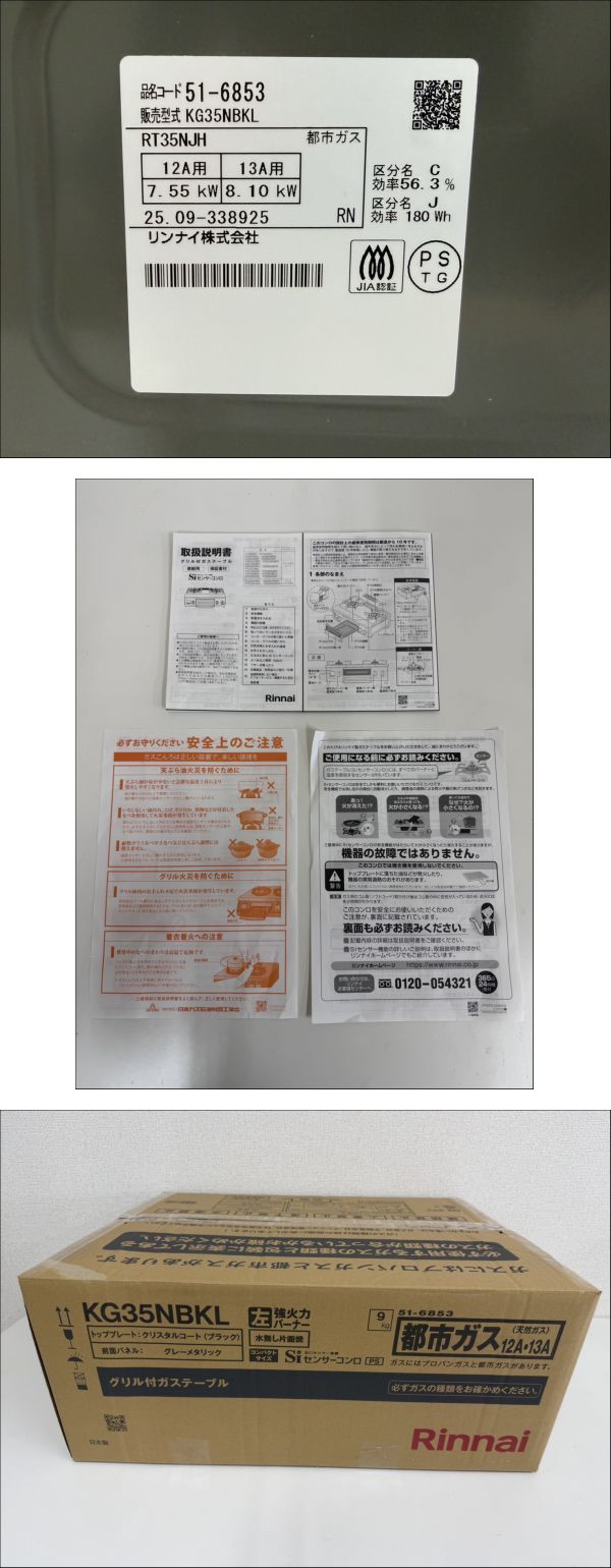 ▲営AD245-140 美品 Rinnai リンナイ グリル付きガステーブル / KG35NBKL / 2025年製 / 都市ガス用 / ガスコンロ / 現状品/ o 收藏
