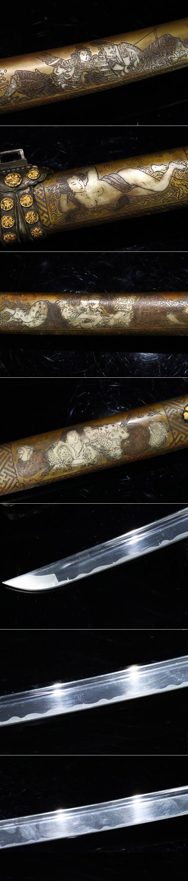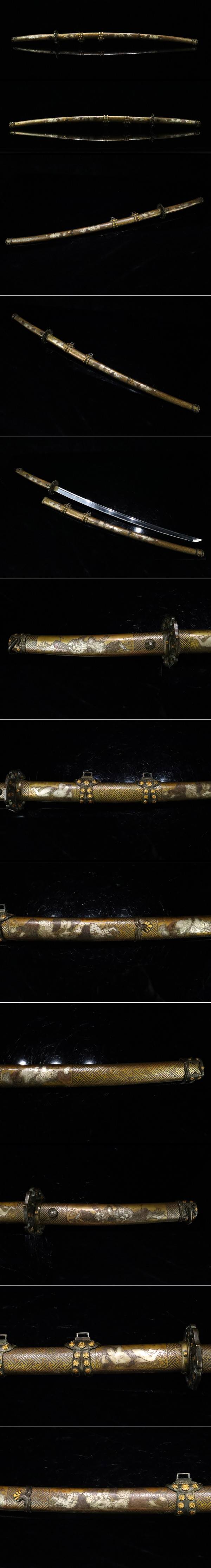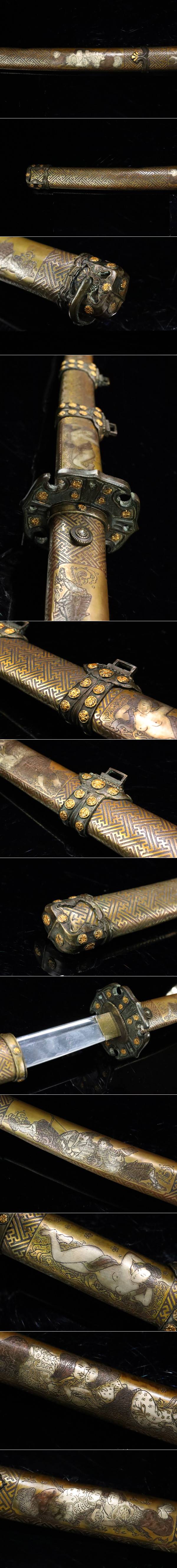 【ASAHI】李朝時代 太刀拵え 全長102cm 銅地一作金銀象嵌彫金具 家紋散らし 極上外装 刀剣 刀装具 某九州名家所蔵品[71116rp] 收藏