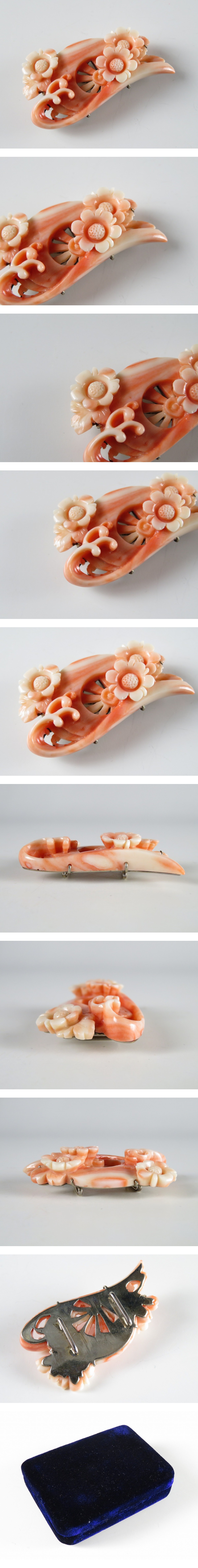 | ☆ 和装小物 珊瑚 花彫 帯留 約12g になります。 |