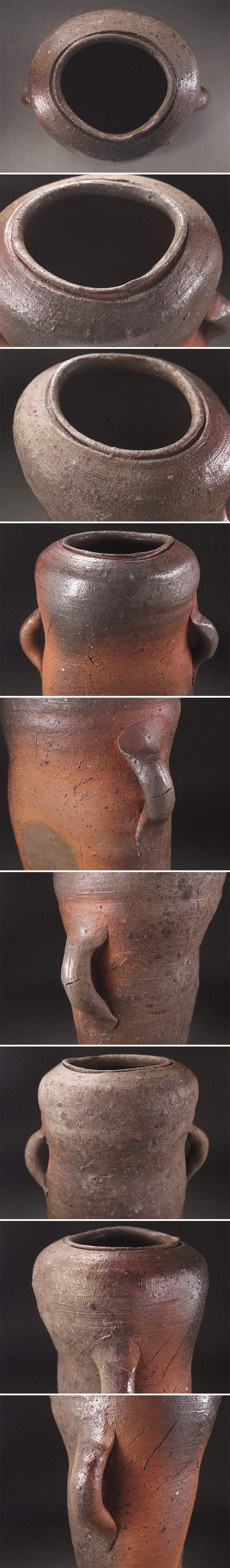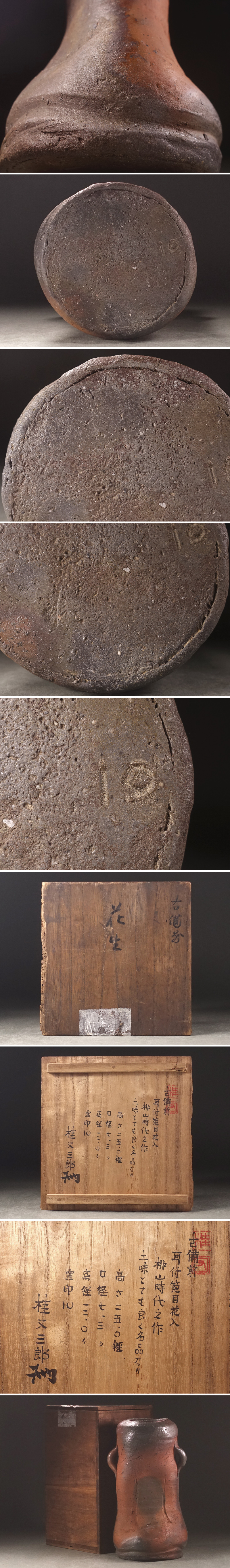 ∇花∇桂又三郎鑑定 桃山時代 古備前箆目耳付花入 高さ25cm 底に窯印 土味とても良く名品なり 桂又三郎鑑定箱付 收藏