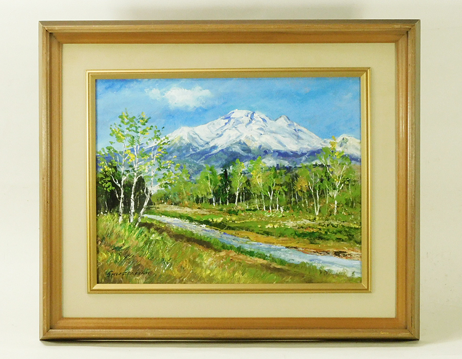 尾身周三 乗鞍岳 F6 油彩 額装 日本の民家展 日本風景美術展選抜 s25110501 收藏