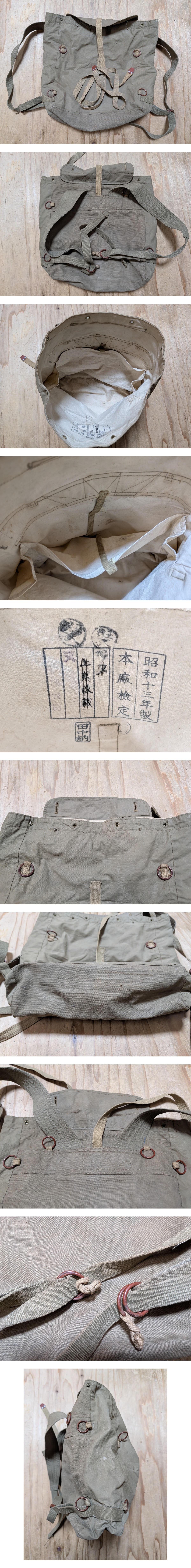 1 軍装品 カバン リュックサック 昭和13年製 本廠検定 戦中 旧日本陸軍 布製 背曩 背嚢 背のう 陸軍 海軍 軍等 雑嚢 收藏