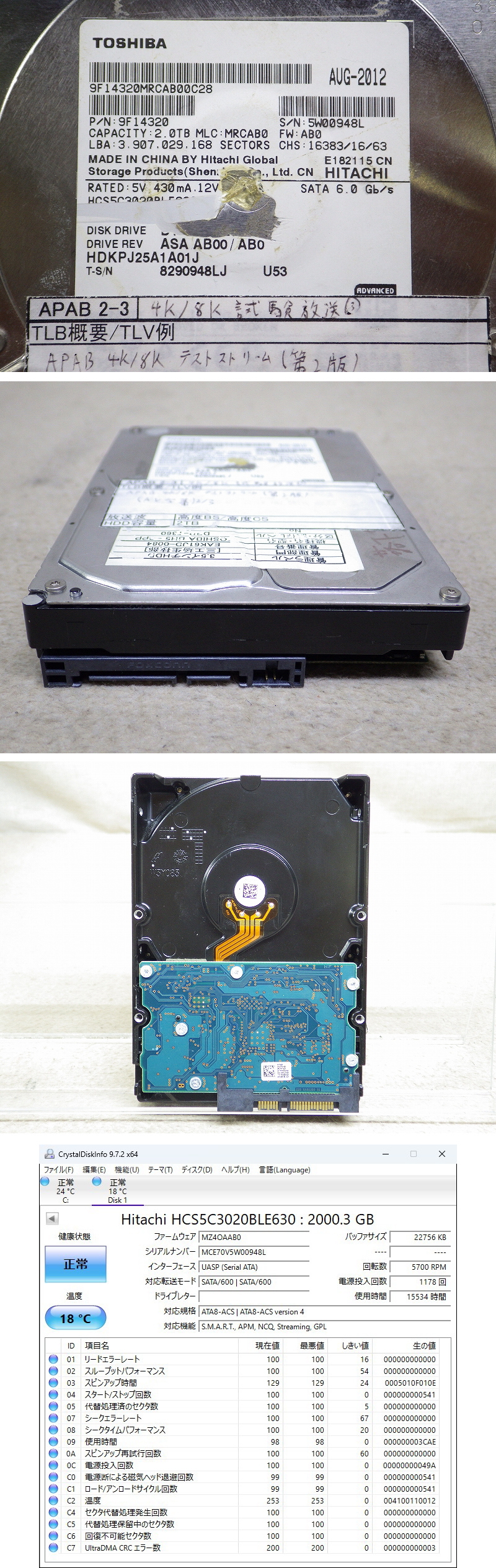 Kネま2261 日立/HITACHI 3.5インチ SATA 内蔵HDD 2TB HCS5C3020BLE630 パソコン周辺機器 PCパーツ ハードディスク 收藏