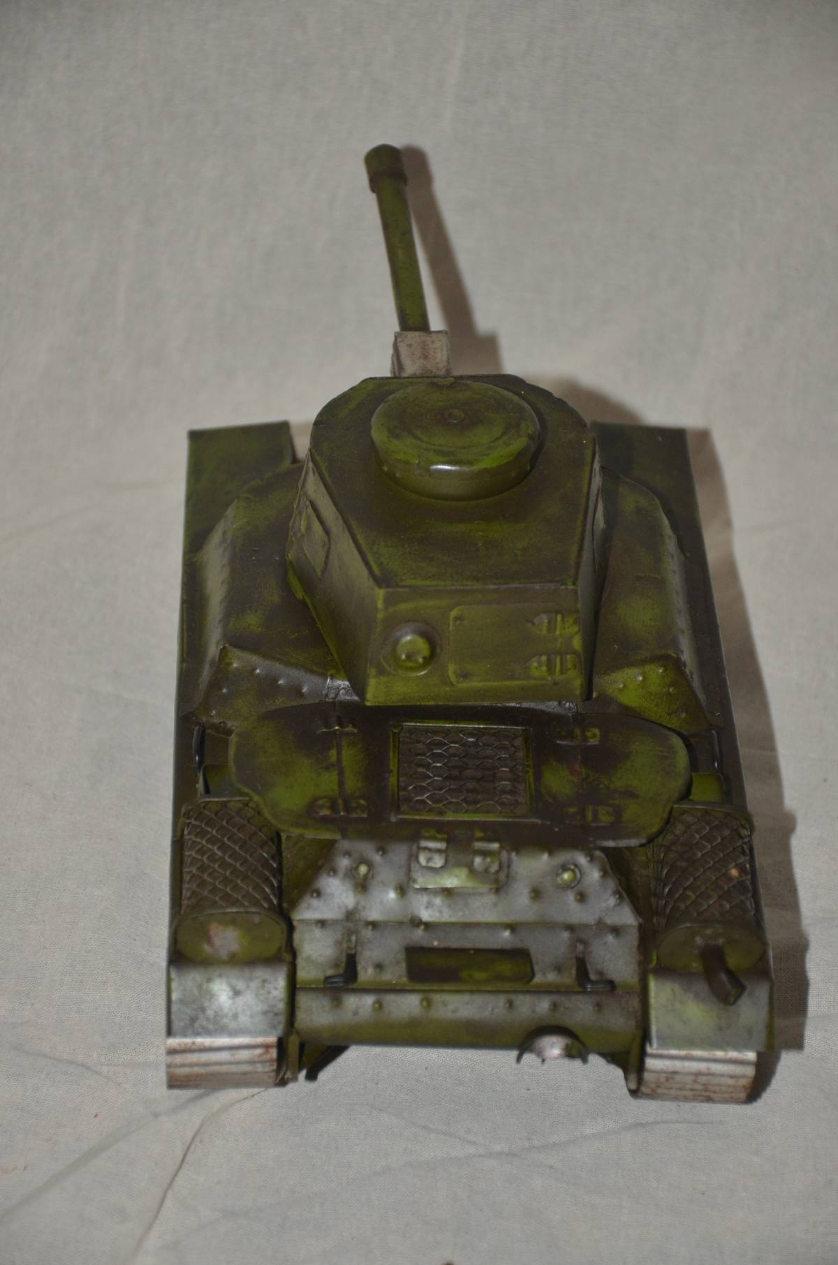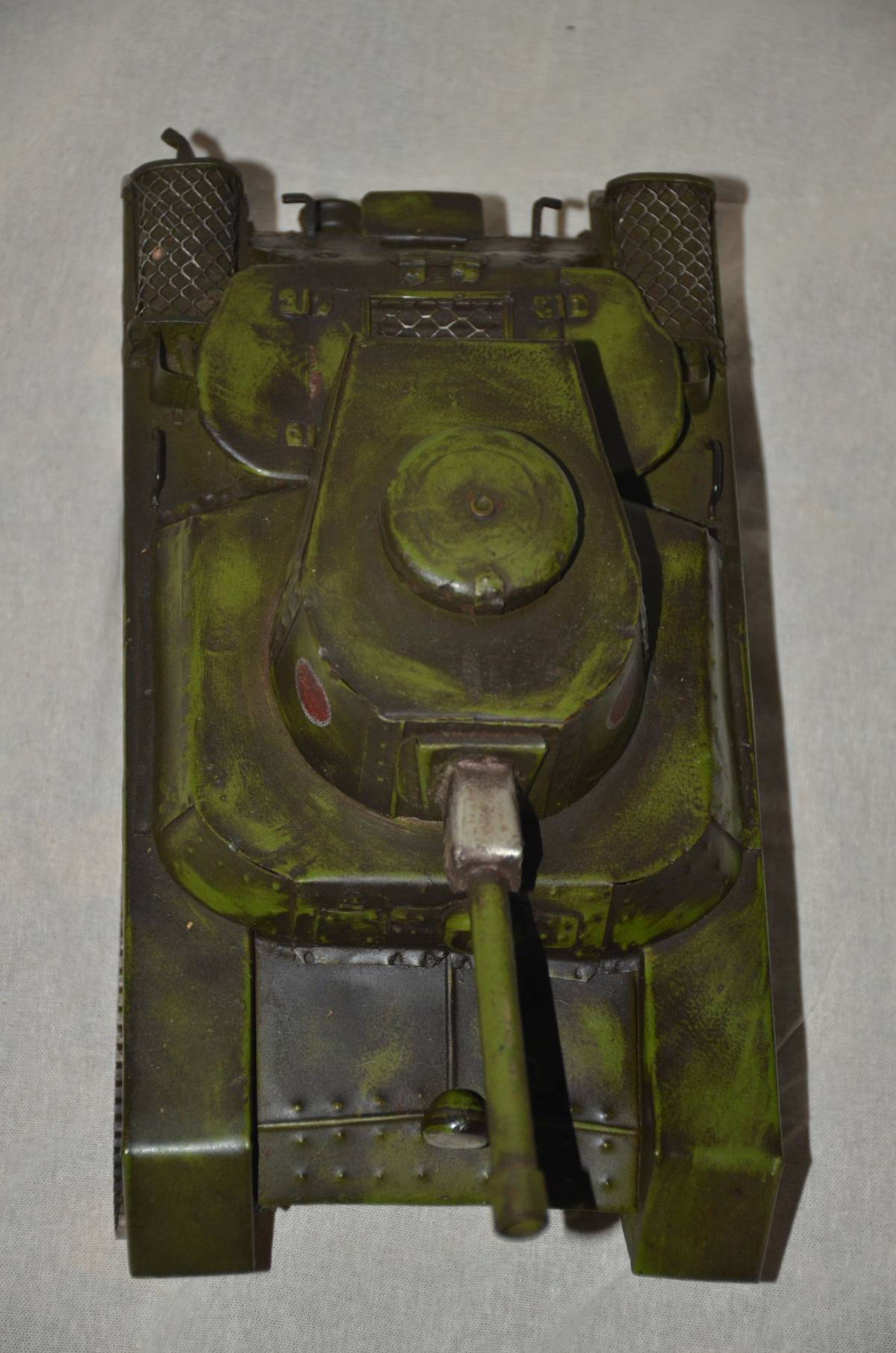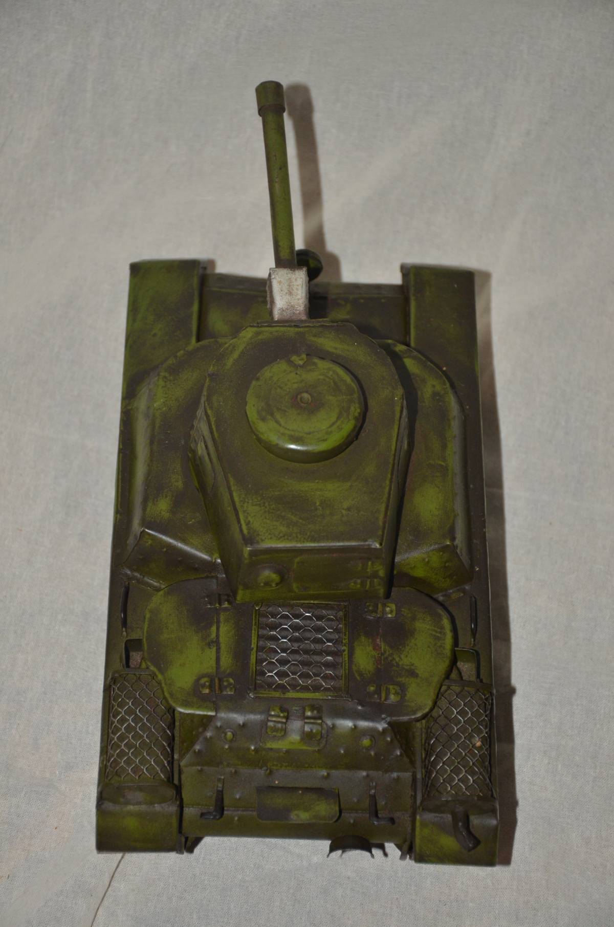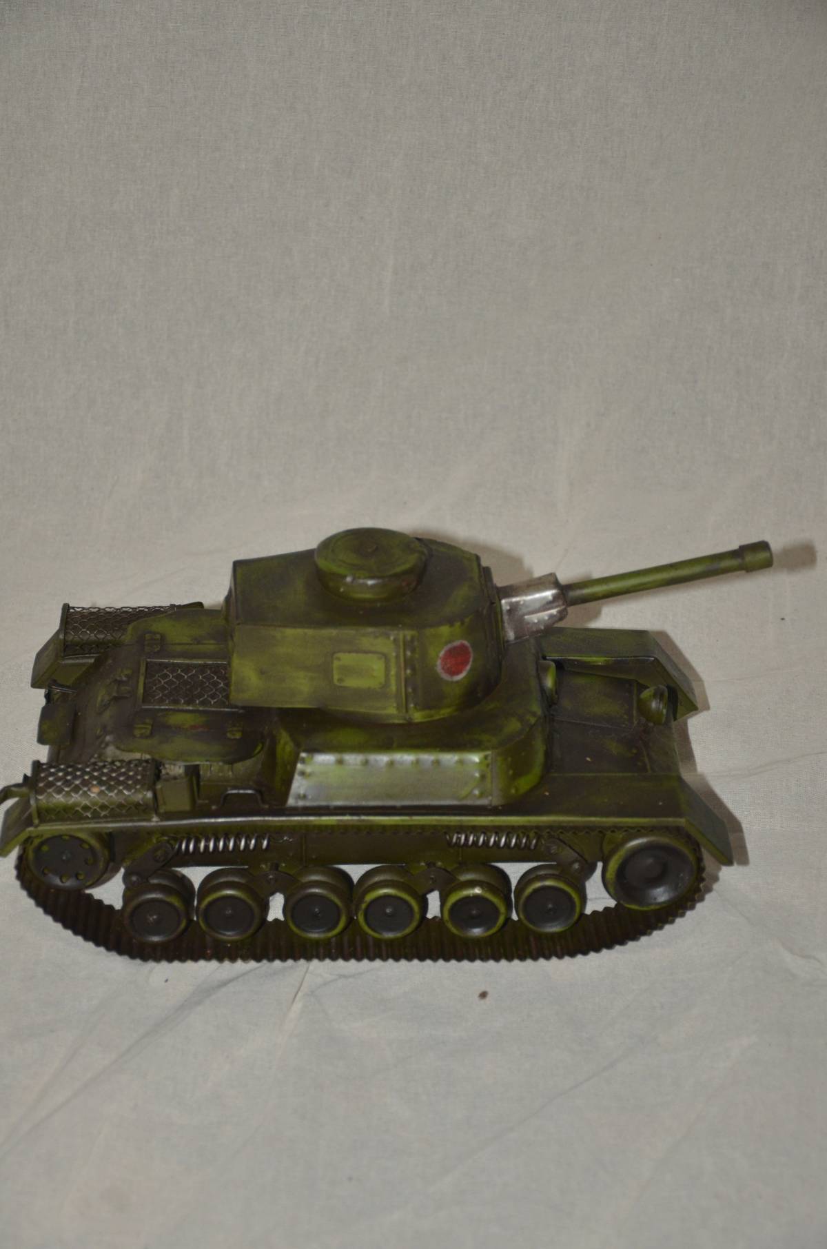 手作りの、日本陸軍三式戦車と思われる模型です。車体、キャタピラー、転輪、全て磁石に反応します。サイズは、幅14センチ、長さ24センチ、高さ10.5センチ、重さ821グラムです。砲身は10、5センチです。本文下の追加写真もご覧ください。ヤマト運輸宅急便で、全国一律700円でお送りさせていただきます。