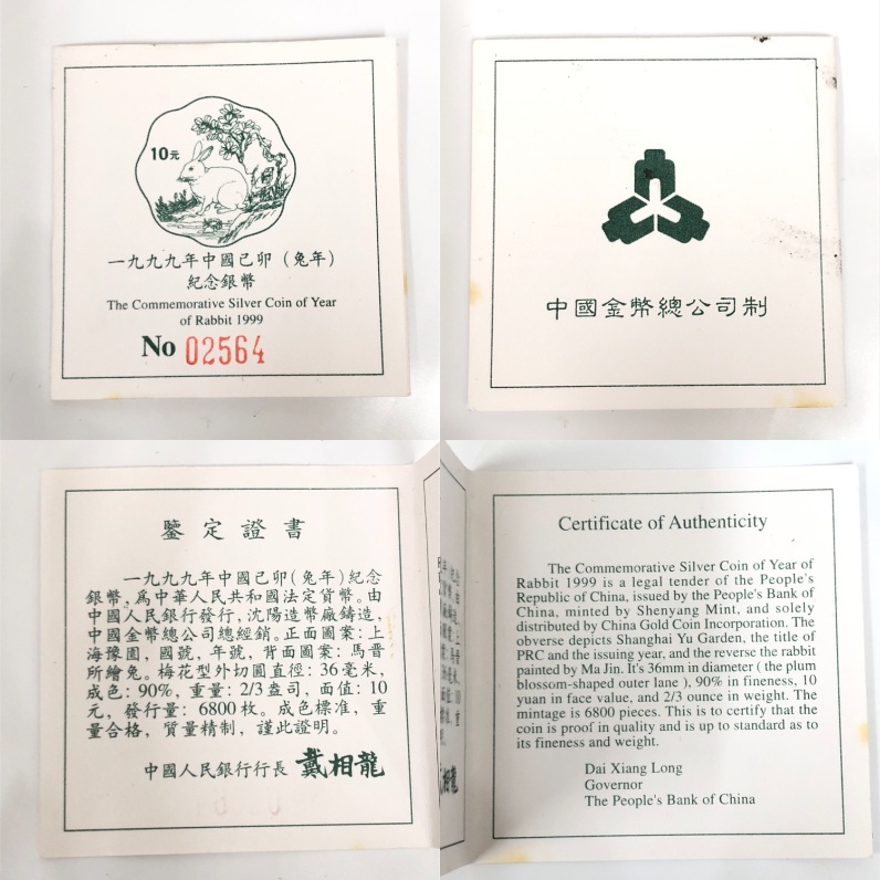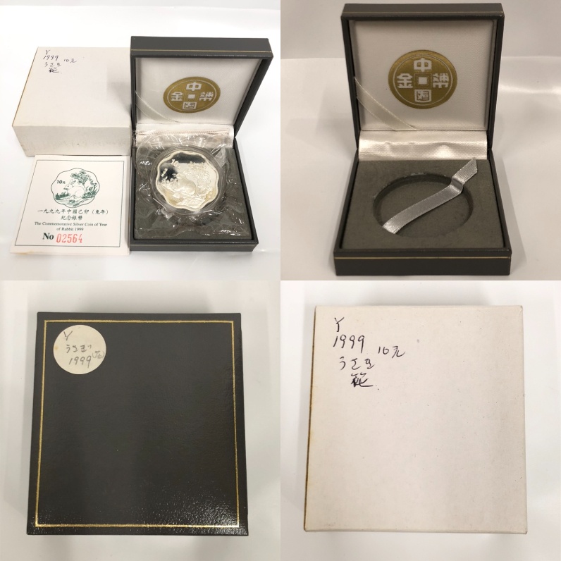 ■【買取まねきや】中国10元 干支銀貨 1994年 戌 SV1000 / 梅花 1999年 兎 SV900 箱付き 重量約63.66g 計2点■ |