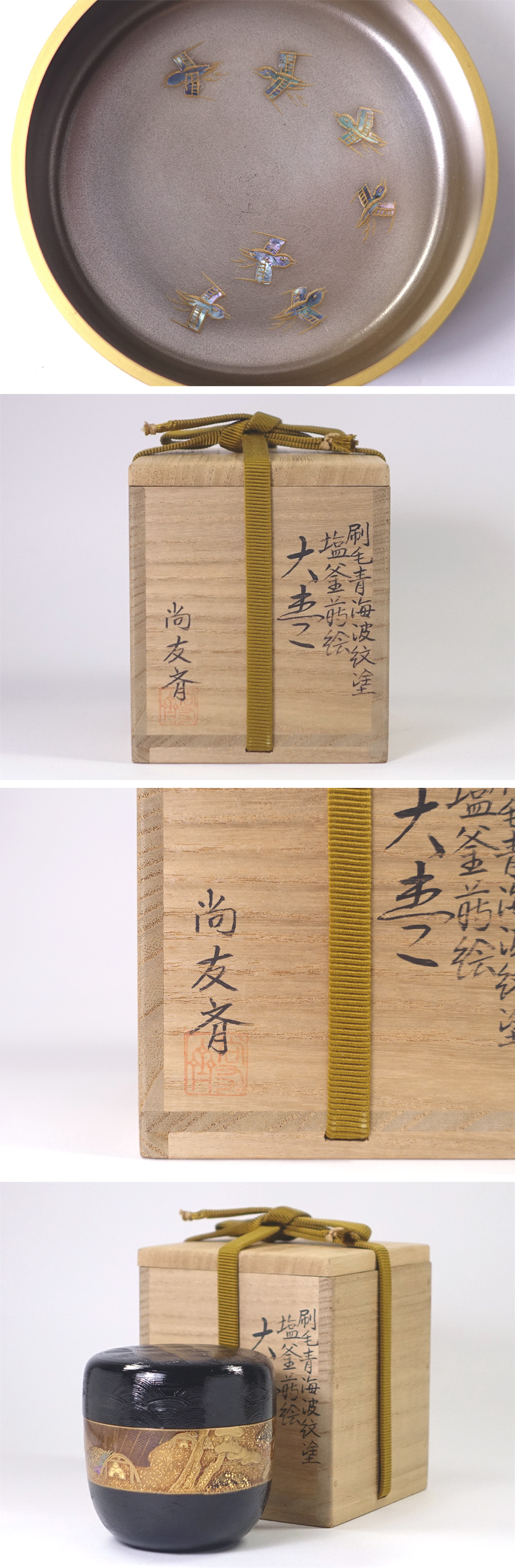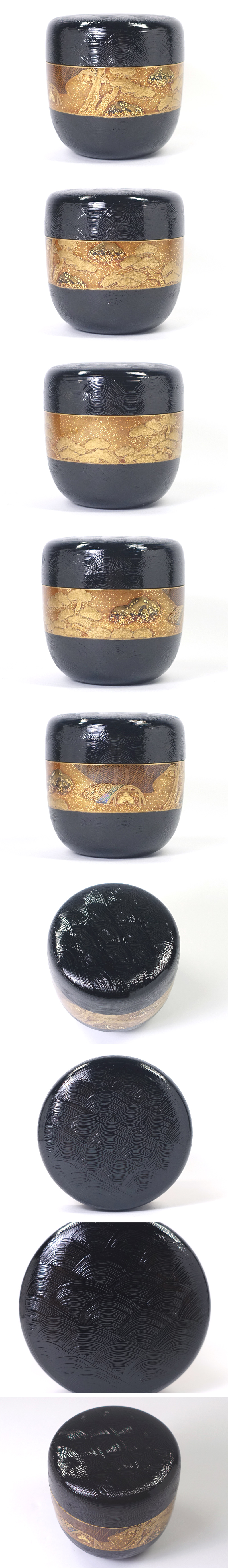 本物保証!     【角出尚友斎】作、刷毛青海波紋塗塩釜蒔絵大棗です。