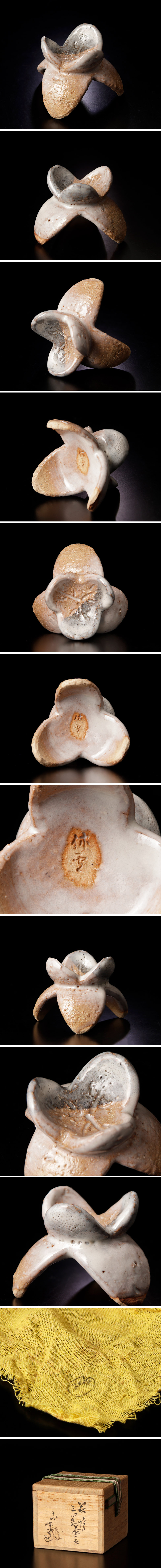| 【古美味】人間国宝 十代三輪休雪(休和)造 萩焼三ツ葉蓋置 茶道具 保証品 |