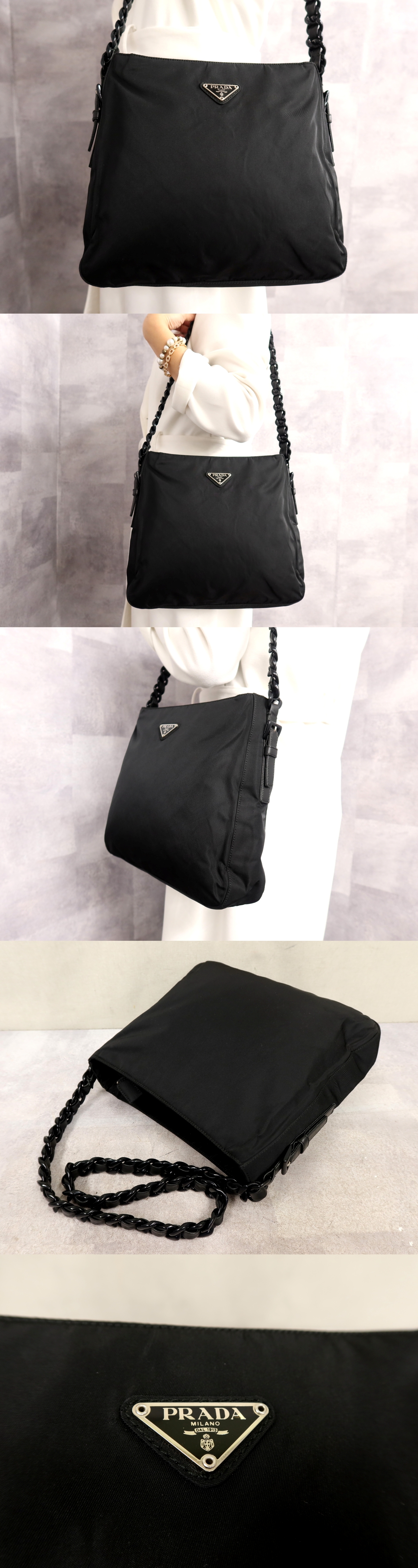 ●超美品●PRADA プラダ●プラスチックチェーン●ポコノ ナイロン ラム レザー 本革●ショルダー バッグ●黒●イタリア製●Js63369 收藏