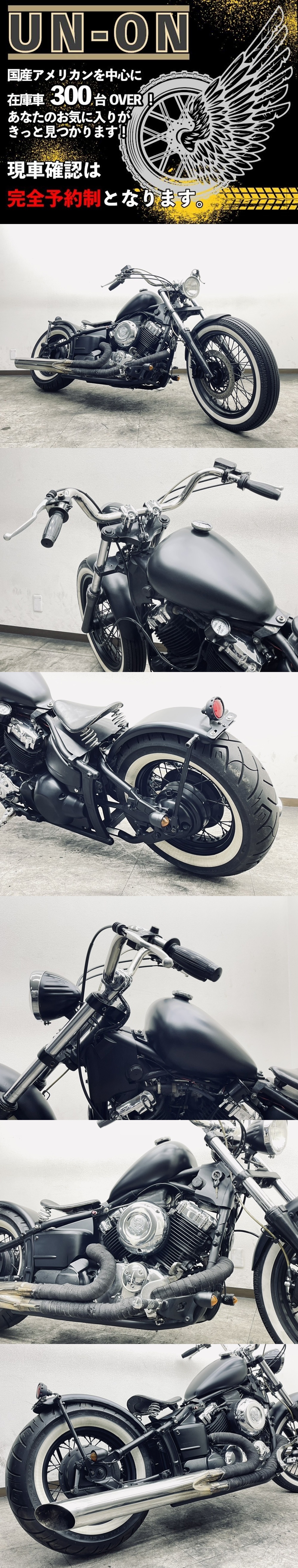 | ~~~~~~ ご注意ください ご注意ください ご注意ください ご注意ください ~~~~~~ 掲載車両は、すべて当社保管倉庫において、直接販売・卸販売をしています。 落札いただいたとしても、商談中の場合やバイクショップ様・業者様が引き上げ直後の場合もあります。 また、落札されても連絡が取れない場合や、ご入金の確認が取れない場合は、他のお客様を優先と致します。 <<<ご連絡先>>>現車確認、大歓迎です! *完全予約制です。必ず事前にご連絡ください* !!! 入札前には、必ずメールか電話にてご連絡ください !!! 電話:045-719-5355 当社HP https://sites.google.com/view/un-on/home メール:unonbike@gmail.com お気軽にご連絡ください お問い合わせの際は ドラッグスター400 管理番号 546 でお願いします! セルにてエンジン始動、アイドリング、吹け上がりともに良好です。 取り扱い車両はすべて中古車・現状引き渡しとなります。 ご入札前には、出来る限り「現車確認」もしくは「お電話」「メール」にてご連絡をお願いします。 車輌状態を説明させていただきます。 【社外パーツについて】 本車両に付属している社外パーツにつきましては、出品前に動作確認は行っておりますが、中古品のため万が一不具合等があった場合でも 保証は致しかねますので予めご了承の上、ご検討くださいますようお願い致します。 電話番号:045-719-5355 メール:unonbike@gmail.com 残念ながら、事前のご連絡がない場合、「誤入札」「誤落札」が多い為、入札・落札を取り消す事もありますので、 予めご了承ください。 >>>>>>>>>>>>>>>>>>>>>>>>>>>>>>>>>>>>>>>>>>>> 当店は業者販売・現状引き渡し専門店になります。 一般のお客様にも、業者価格にて販売しています。 基本的には整備料も頂かず現状販売の形となりますので、ご購入後は「点検・整備・メンテナンス」を行ってからご使用ください。 現車確認・業者販売 大歓迎!! 国産アメリカン中心に 常時 300台前後の車両在庫があります! 現車確認、大歓迎です。 車両引き渡しについては、『自賠責保険加入』『予備車検取得』『登録・届出代行(ナンバー登録)』を完了してからになります。 『登録・届出代行費用』は、横浜登録 手数料 20000円 (税別) 横浜登録以外の管轄外 手数料 30000円(税別)となります。 『予備車検取得』については、エンジンサイズや搭載マフラー等によって変わってきますので、まずはお問い合わせください。 走行距離は、メーター表示距離となります。 配送につきましては、当社にて契約している陸送会社様 3社の中から最安を選択して手配いたします。 配送費用については、納車先住所によって異なりますので、お問い合わせください。 デポ持ち込みに関しては7000円(税別)で行います。 なお、落札後のキャンセルは受け付けておりません。ご不明点等がありましたら、必ず入札・落札前にお問い合わせください。 落札後のキャンセルについては、即決価格の10%のキャンセル費用が発生いたしますので、予めご了承ください。 <<<<<<<<<<<<<<<<<<<<<<<<<<<<<<<<<<<<<<<<<<<< 電話 : 045-719-5355 メール:unonbike@gmail.com 現車確認は業者オークションで不在時が多い為 完全予約制です ~~~~~~~~~~~~~~~~~~~~~~~~~~~~~~~~~~~~~~~~~~~~~~~~ 取り扱い車両はすべて中古車・現状引き渡しとなります。 ご入札前には、出来る限り「現車確認」もしくは「お電話」「メール」にてご連絡をお願いします。 車輌状態を説明させていただきます。 電話番号:045-719-5355 メール:unonbike@gmail.com 残念ながら、事前のご連絡がない場合、「誤入札」「誤落札」が多い為、入札・落札を取り消す事もありますので、 予めご了承ください。 >>>>>>>>>>>>>>>>>>>>>>>>>>>>>>>>>>>>>>>>>>>> 当店は業者販売・現状引き渡し専門店になります。 一般のお客様にも、業者価格にて販売しています。 基本的には整備料も頂かず現状販売の形となりますので、ご購入後は「点検・整備・メンテナンス」を行ってからご使用ください。 車両引き渡しについては、『自賠責保険加入』『予備車検取得』『登録・届出代行(ナンバー登録)』を完了してからになります。 『登録・届出代行費用』は、横浜登録 手数料 20000円 (税別) 横浜登録以外の管轄外 手数料 30000円(税別)となります。 『予備車検取得』については、エンジンサイズや搭載マフラー等によって変わってきますので、まずはお問い合わせください。 走行距離は、メーター表示距離となります。 配送につきましては、当社にて契約している陸送会社様 3社の中から最安を選択して手配いたします。 配送費用については、納車先住所によって異なりますので、お問い合わせください。 デポ持ち込みに関しては7000円(税別)で行います。 なお、落札後のキャンセルは受け付けておりません。ご不明点等がありましたら、必ず入札・落札前にお問い合わせください。 落札後のキャンセルについては、即決価格の10%のキャンセル費用が発生いたしますので、予めご了承ください。 <<<<<<<<<<<<<<<<<<<<<<<<<<<<<<<<<<<<<<<<<<<< |