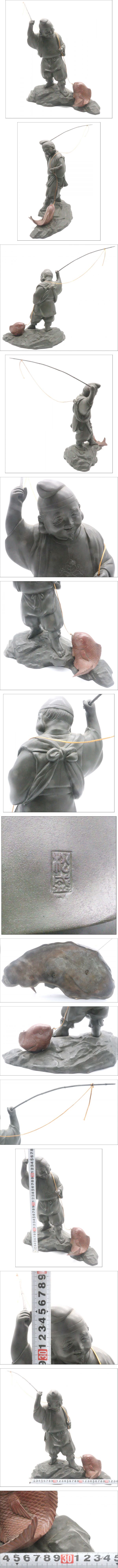 【ト足】七福神 恵比寿 えびす 在銘 松盛 彫金 金属工芸 金工作家 像 縁起物 置物 インテリア コレクション CA460CSS28 收藏