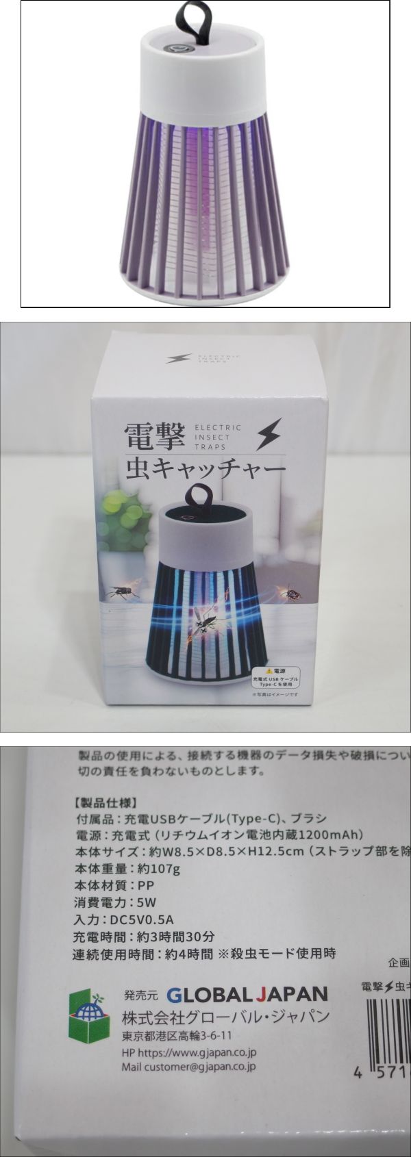 | 【商品名】 電撃虫キャッチャー(Type-Cリニューアル仕様)グリーン】 【メーカー名】 グローバル・ジャパン◆GLOBAL JAPAN 【特徴】 ・化学薬品を使用せず、UV光源誘引式で虫を捕獲する、 ・人に優しい光方式の殺虫剤です。 ・静音設計で寝室にも最適◎安全面にも配慮した設計になっています。 【仕様】 ・付属品:充電ケーブル、ブラシ ・電源:充電式(リチウムイオン電池内蔵1200Ah) ・消費電力:5W ・入力:DC5V0.5A 【商品状態】 ★新品未使用品です。 ★付属品は全て揃っています。 ★動作上の不具合はございません。 ★画像にてご確認の上、ご不明な点はお問い合わせ下さい。 【出品形態】 代行出品 【お支払方法】 ★クレジットカード決済 ★PayPay ★コンビニ(セブン-イレブン) ★コンビニ(ファミリーマート、ローソン、その他) ★paypay銀行振込 ★ゆうちょ銀行振込 ★三菱UFJ銀行振込 【発送方法】 神奈川県より佐川60サイズ(沖縄・離島を除く) | |||
