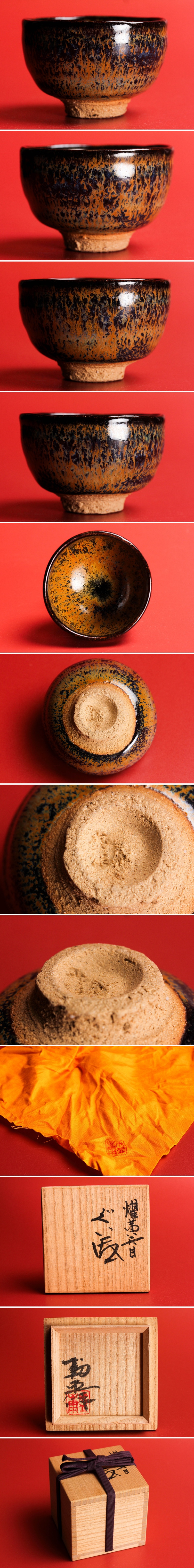 木村盛康 燿黄天目ぐい呑 共箱 共布 本物保証 收藏