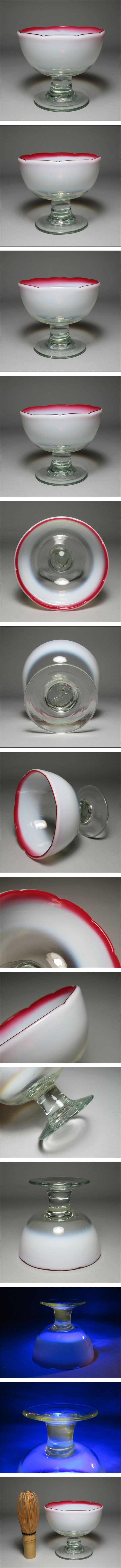| 1円スタート~明治期~大正ロマン 3-2 乳白色 赤縁口 輪花型 氷コップ/アイスカップ ウランガラス 気泡ガラス 吹きガラス/昭和レトロ | ||