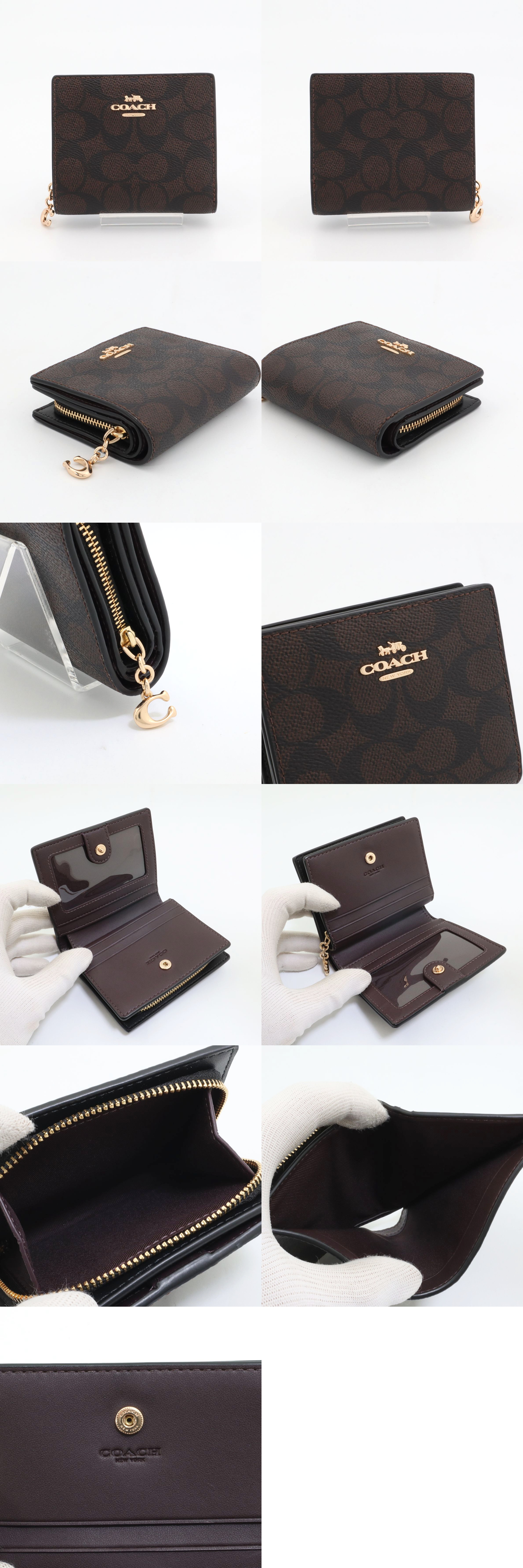 極美品 コーチ COACH シグネチャー スナップ ウォレット 二つ折り財布 コンパクト ブラウン レディース PVC×レザー CW789 收藏