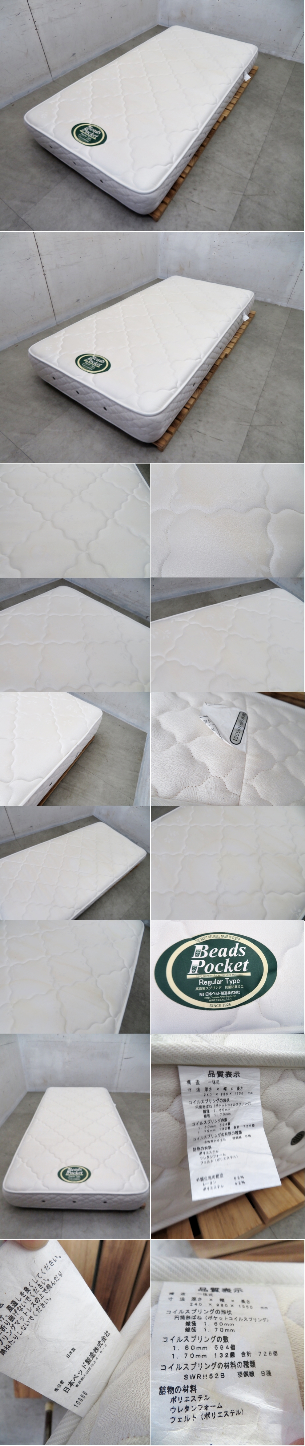 ■P963■東京ベッド■ポケットコイル■高密度スプリング■高級■シングルベッドマットレス■モダン■Beads Pocket■レギュラー 收藏
