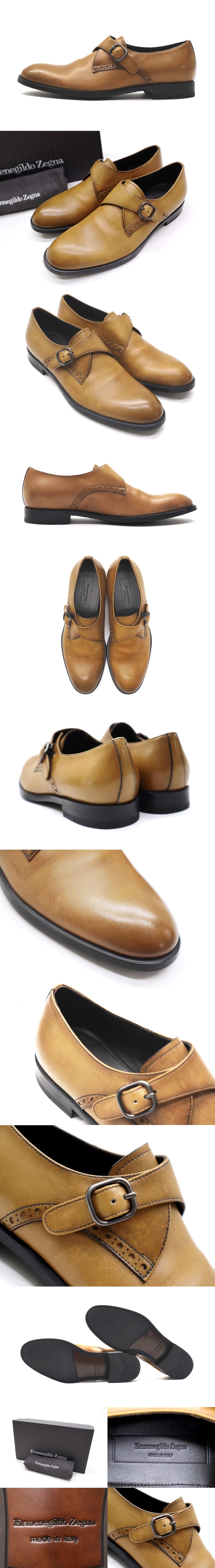 22万新品◆7H=25.5cm相当◆Ermenegildo Zegna◆シエナフレックス シングルモンクストラップシューズ 薄茶ベージュ 1円 收藏